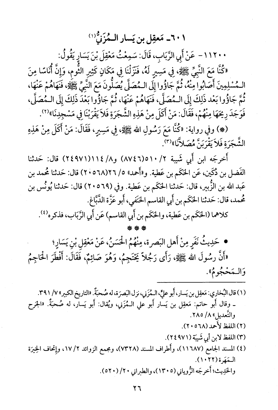 (¬١) قال البخاري: معقل بن يسار، أَبو علي، المزني، نزل البصرة، له صحبة. «التاريخ الكبير» ٧/ ٣٩١.