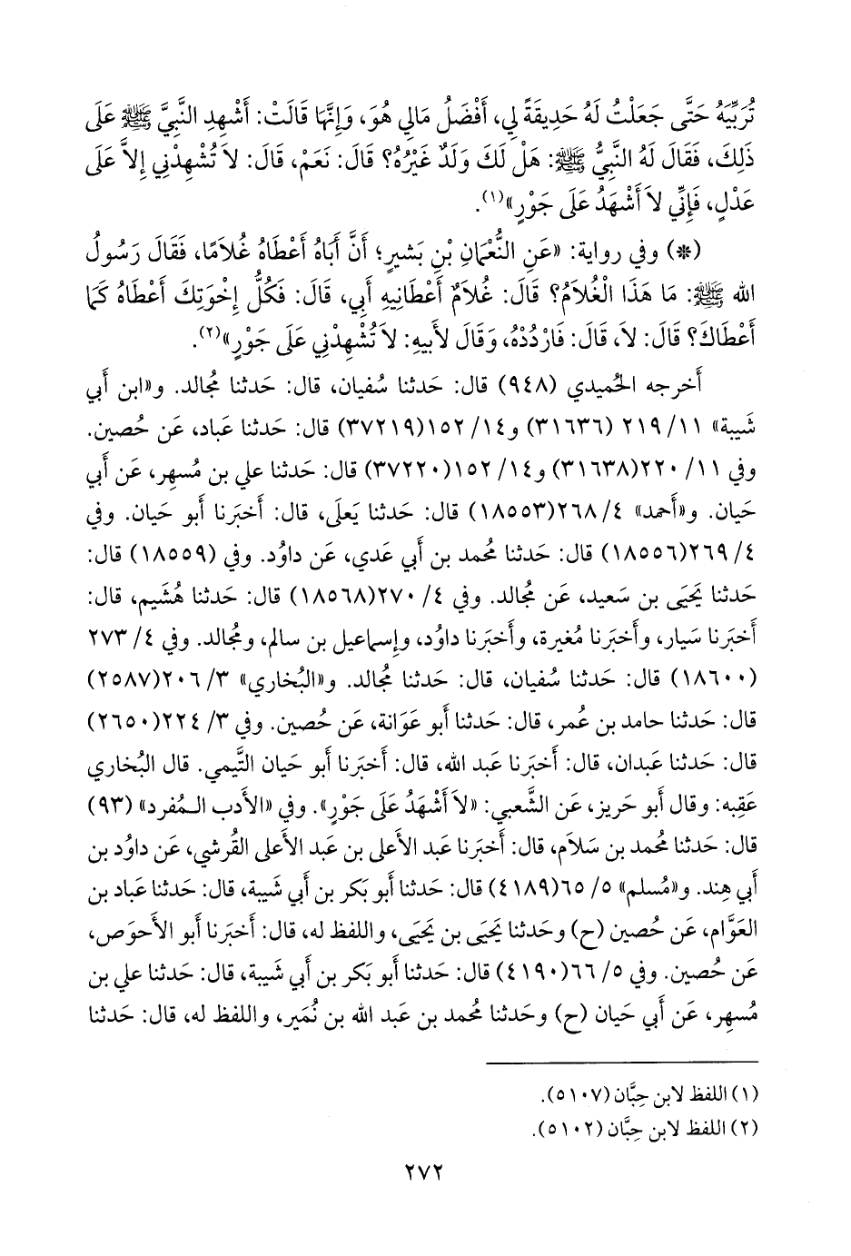 و «مسلم» ٥/ ٦٥ (٤١٨٩) قال: حدثنا أَبو بكر بن أبي شيبة، قال: حدثنا عباد بن العوام، عن حصين (ح) وحدثنا يحيى بن يحيى، واللفظ له، قال: أخبرنا أَبو الأحوص، عن حصين. وفي ٥/ ٦٦ (٤١٩٠) قال: حدثنا أَبو بكر بن أبي شيبة، قال: حدثنا علي بن مُسهِر، عن أبي حيان (ح) وحدثنا محمد بن عبد الله بن نُمير، واللفظ له، قال: حدثنا
