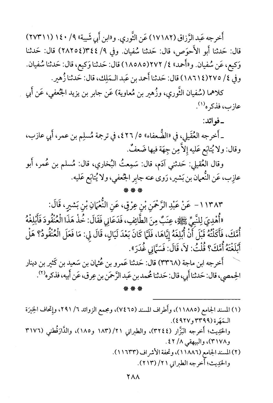 (¬١) المسند الجامع (١١٨٨٦)، وتحفة الأشراف (١١٦٣٣).