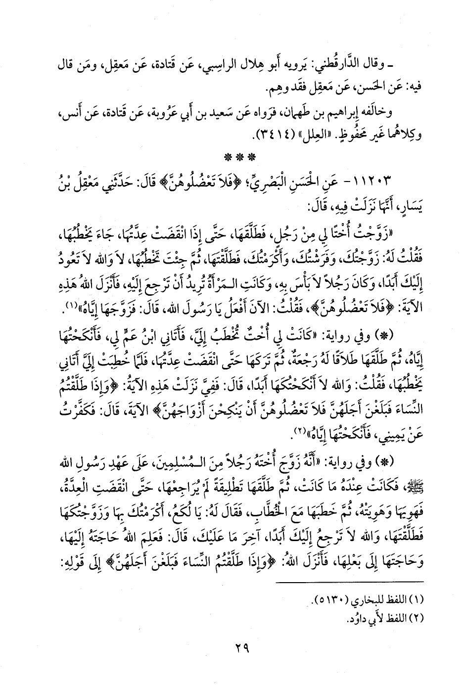 ١١٢٠٣ - عن الحسن البصري؛ {فلا تعضلوهن} قال: حدثني معقل بن يسار، أنها نزلت فيه، قال: