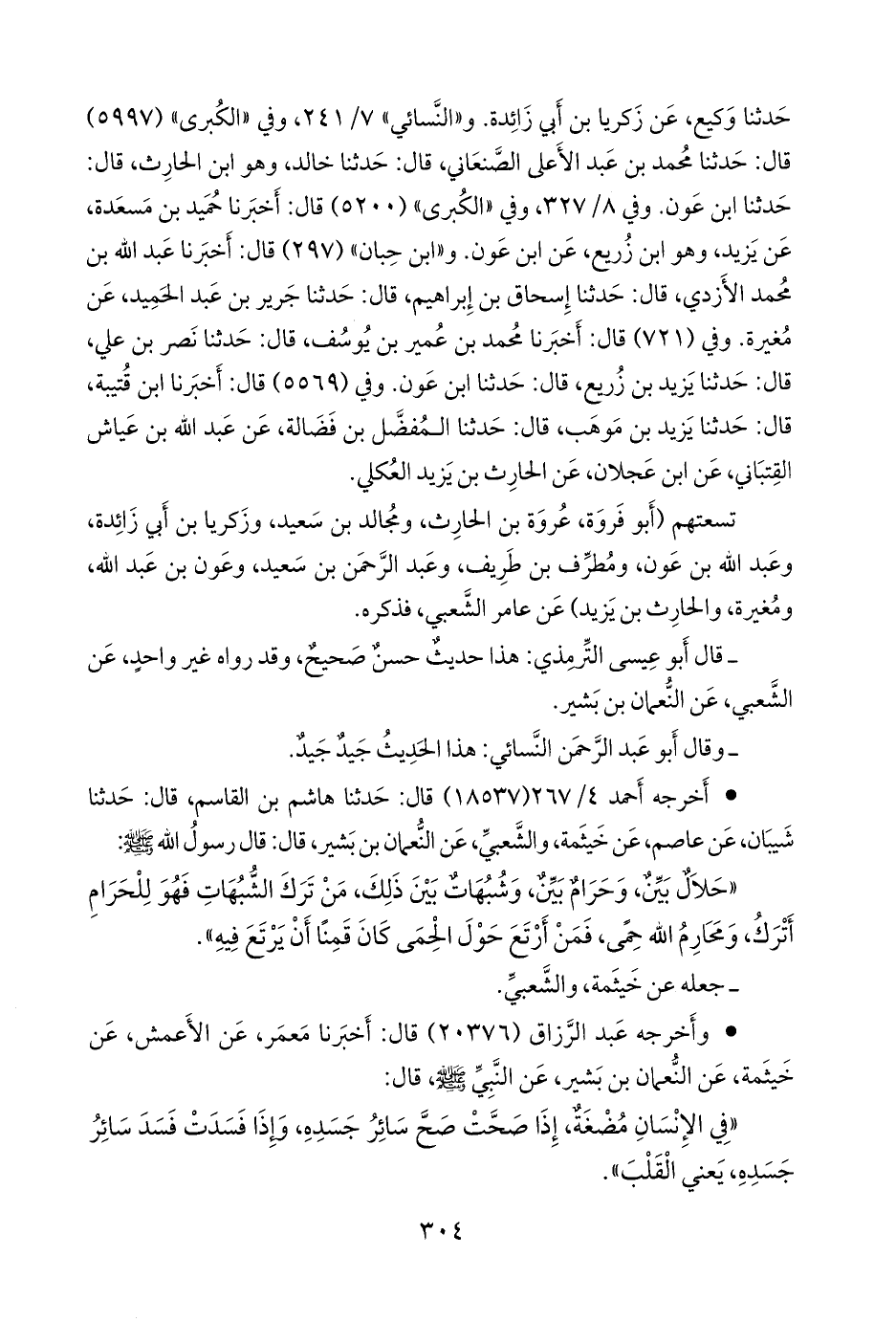 - قال التِّرمِذي: هذا حديثٌ حسنٌ صحيحٌ، وقد رواه غير واحد، عن الشعبي، عن النعمان بن بشير.