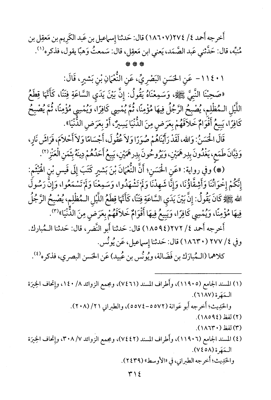 (¬٣) المسند الجامع (١١٩٠٦)، وأطراف المسند (٧٤٤٢)، ومَجمَع الزوائد ٧/ ٣٠٨، وإتحاف الخِيرَة المَهَرة (٧٤٥٨).