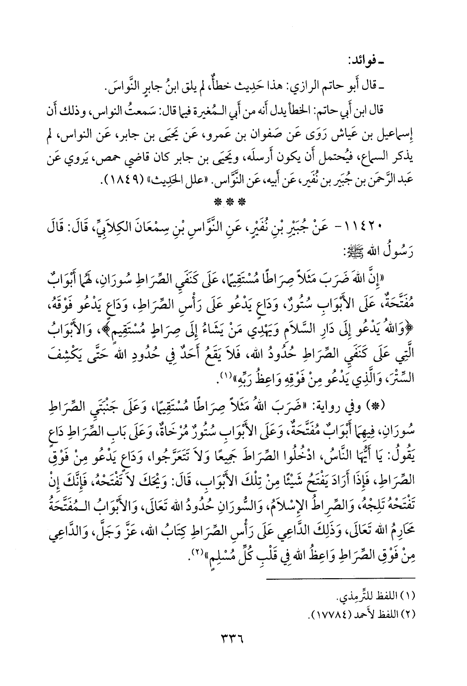 ١١٤٢٠ - عن جبير بن نُفير، عن النواس بن سمعان الأنصاري، عن رسول الله صَلى الله عَليه وسَلم، قال: