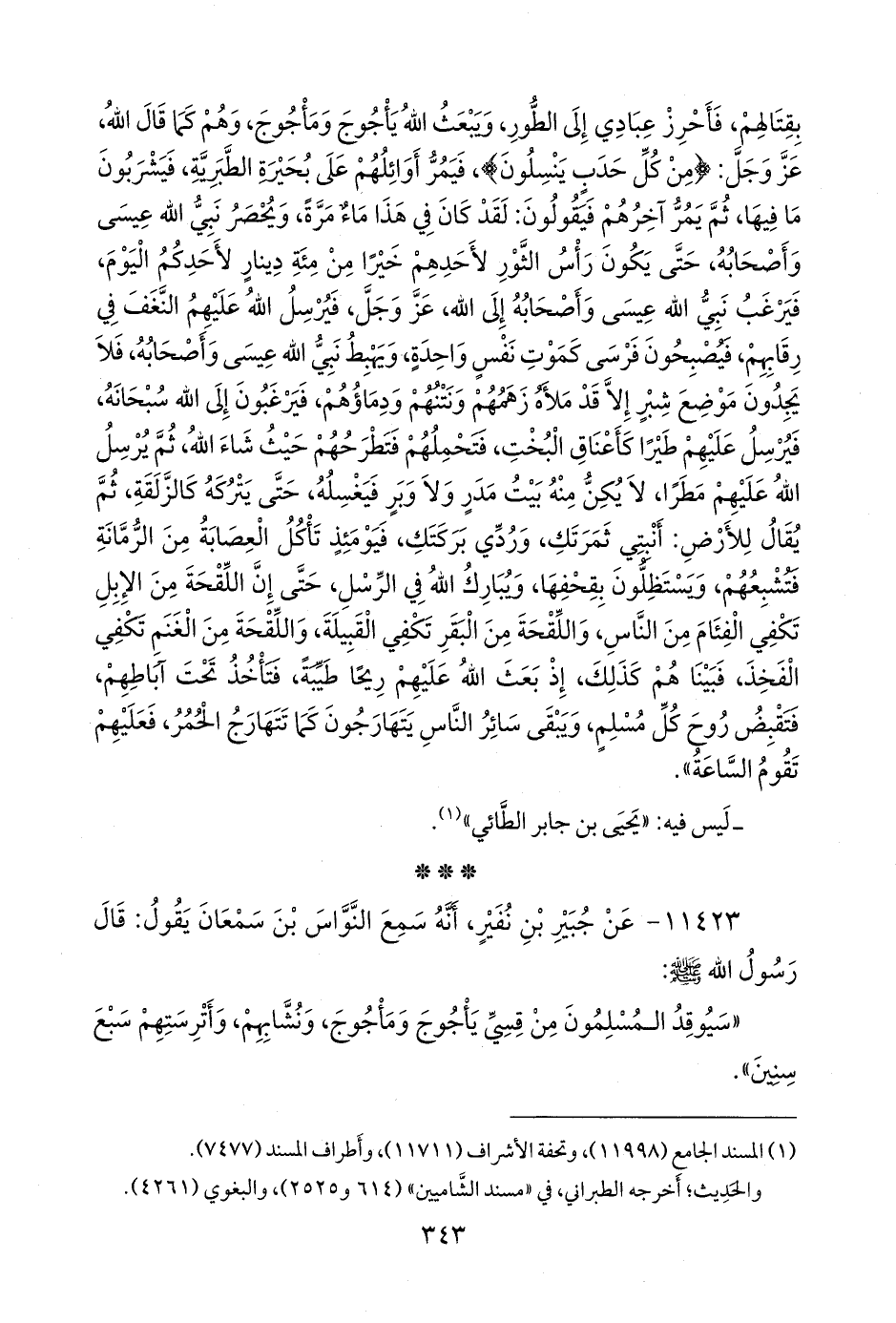 ١١٤٢٣ - عن جُبير بن نُفير، أنه سمع النواس بن سمعان يقول: قال رسول الله صَلى الله عَليه وسَلم: