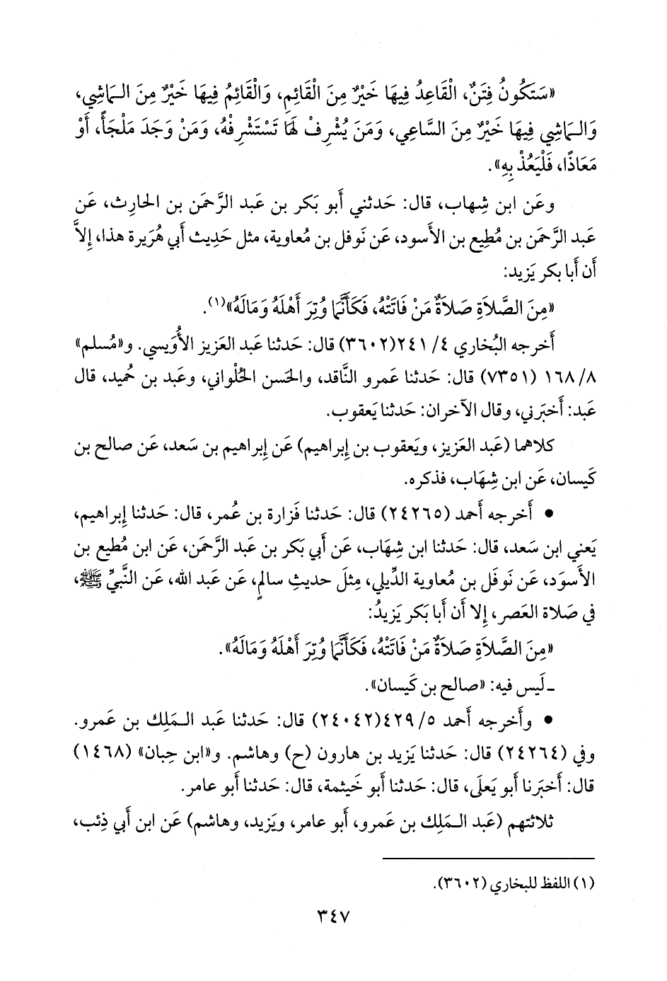 عن الزُّهْري، عن أَبي بكر بن عبد الرَّحمَن بن الحارث بن هشام، عن نوفل بن معاوية، أن النبي صَلى الله عَليه وسَلم قال: