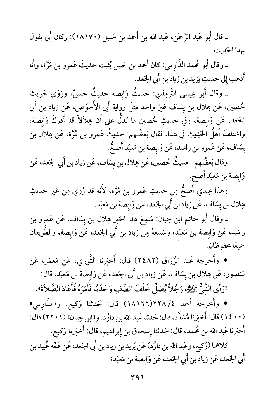 كلاهما (وكيع، وعبد الله بن داود) عن يزيد بن زياد بن أبي الجعد، عن عمه عبيد بن أبي الجعد، عن زياد بن أبي الجعد، عن وابصة بن مَعبد؛