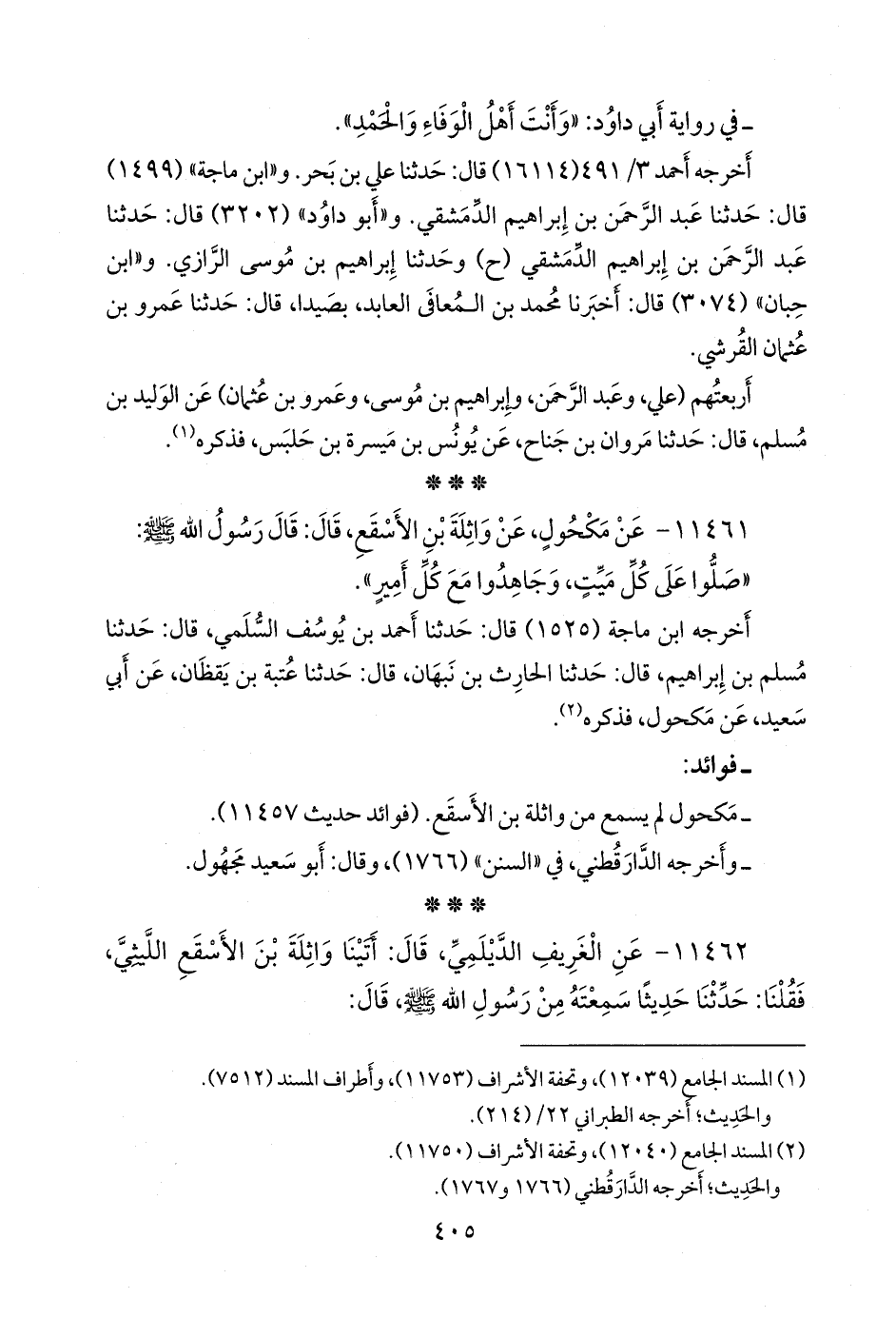 - قلنا: إِسناده ضعيفٌ؛ مكحول لم يسمع من واثلة بن الأسقع. انظر فوائد الحديث رقم (١١٤٥٧).