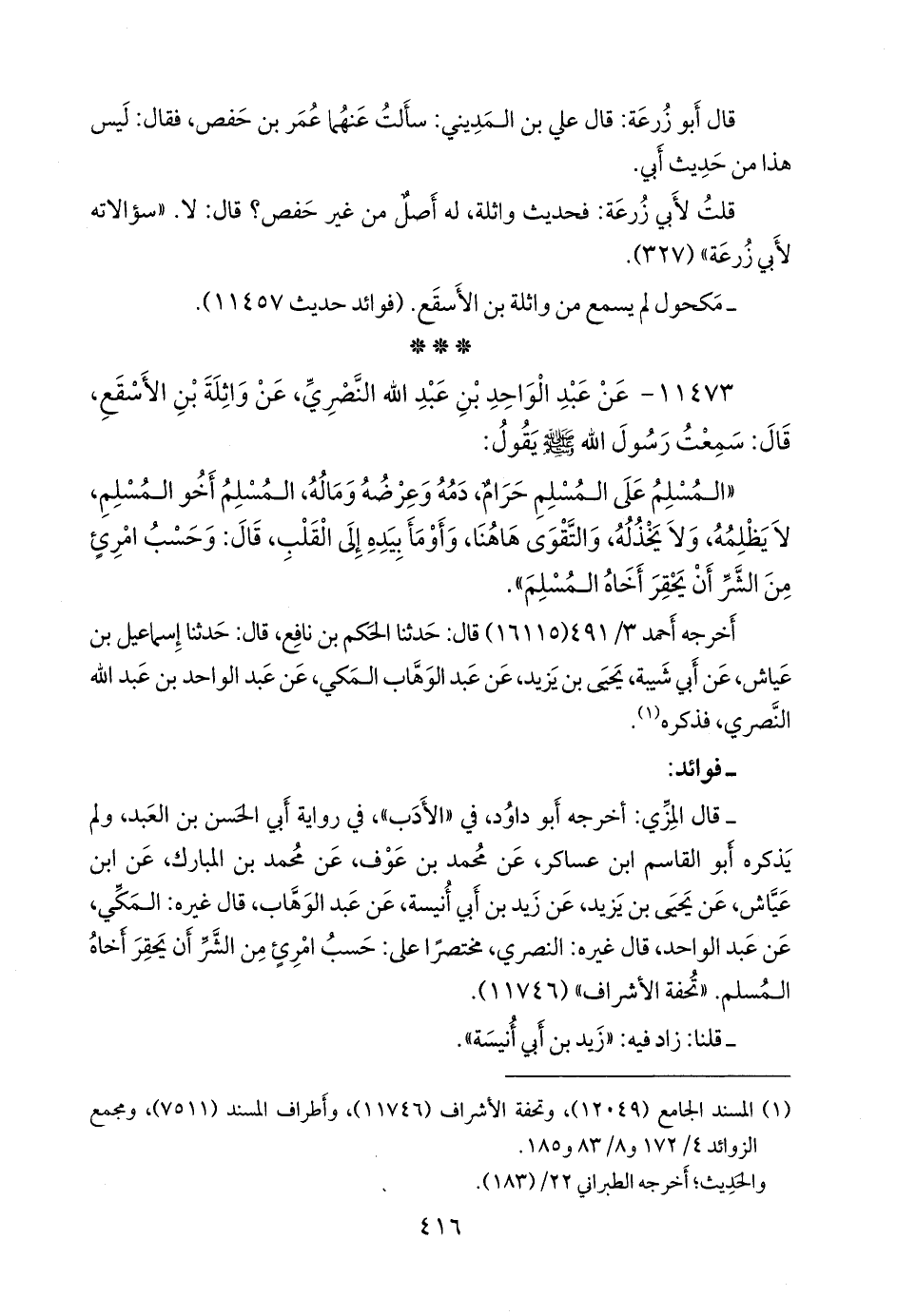 (¬١) المسند الجامع (١٢٠٤٩)، وتحفة الأشراف (١١٧٤٦)، وأطراف المسند (٧٥١١)، ومَجمَع الزوائد ٤/ ١٧٢ و ٨/ ٨٣ و ١٨٥.