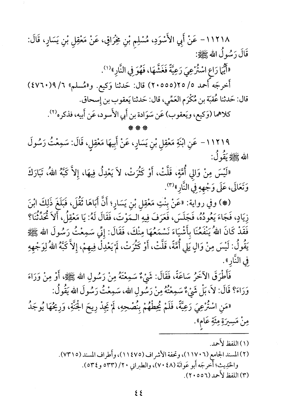 (¬٣) المسند الجامع (١١٧٠٧)، وأطراف المسند (٧٣١٥)، ومَجمَع الزوائد ٥/ ٢١٣.
