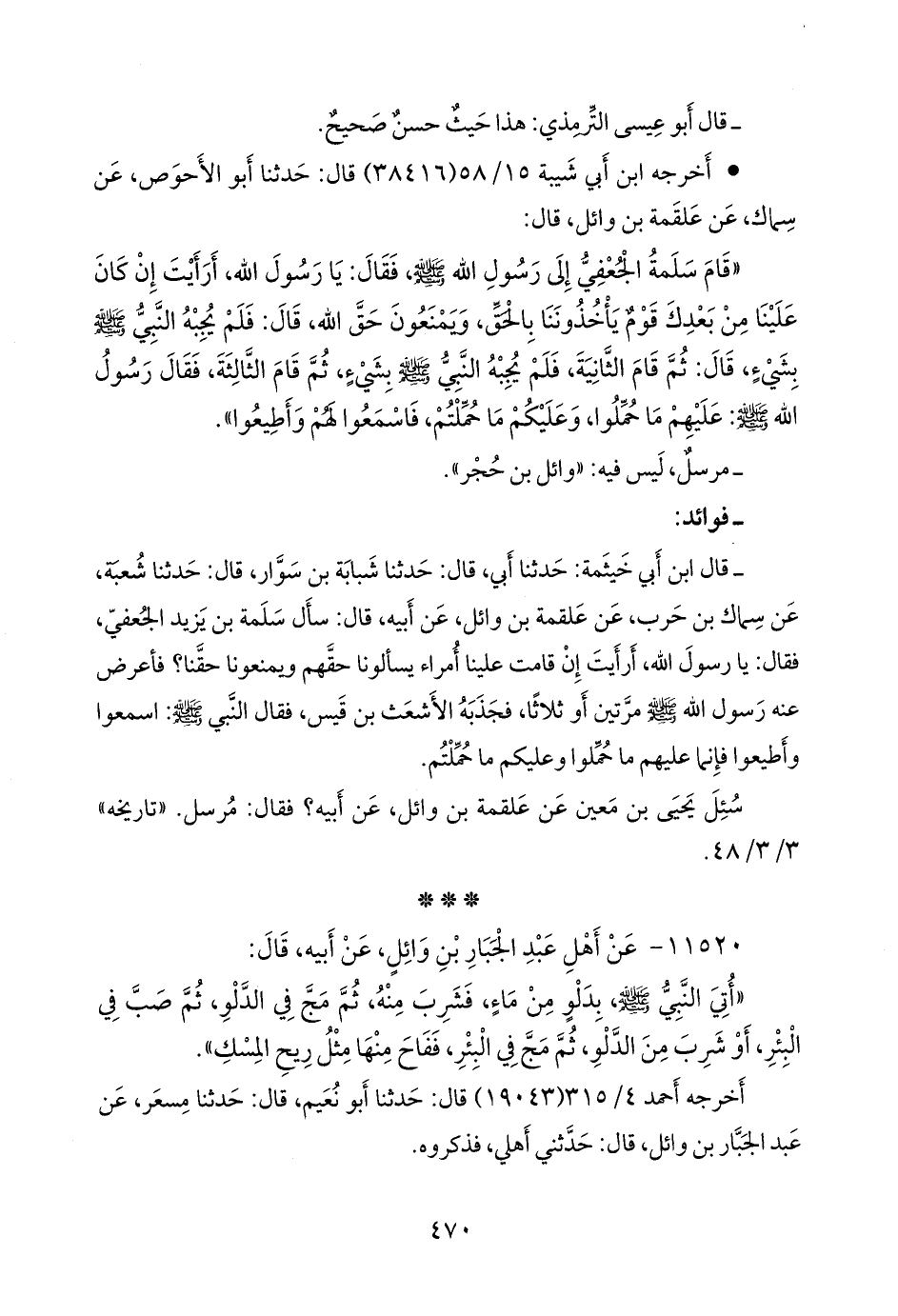 ١١٥٢٠ - عن أهل عبد الجبار بن وائل، عن أبيه، قال: