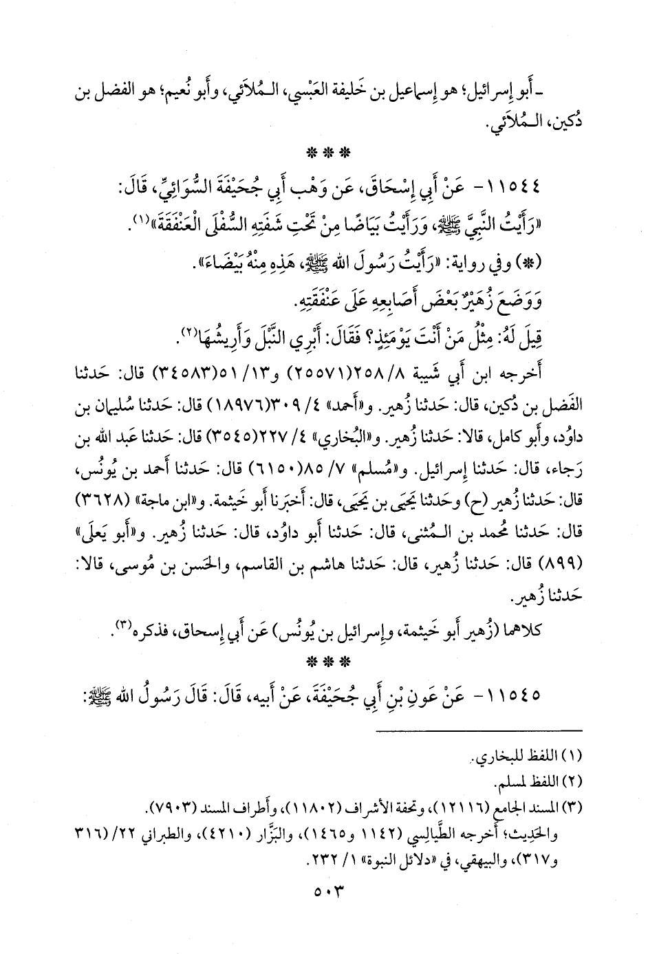 ١١٥٤٤ - عن أبي إسحاق، عن وهب أبي جُحيفة السوائي، قال: