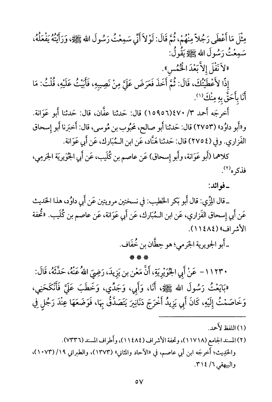 ١١٢٣٠ - عن أبي الجويرية، أن مَعْن بن يزيد، رضي الله عنه، حدثه، قال:
