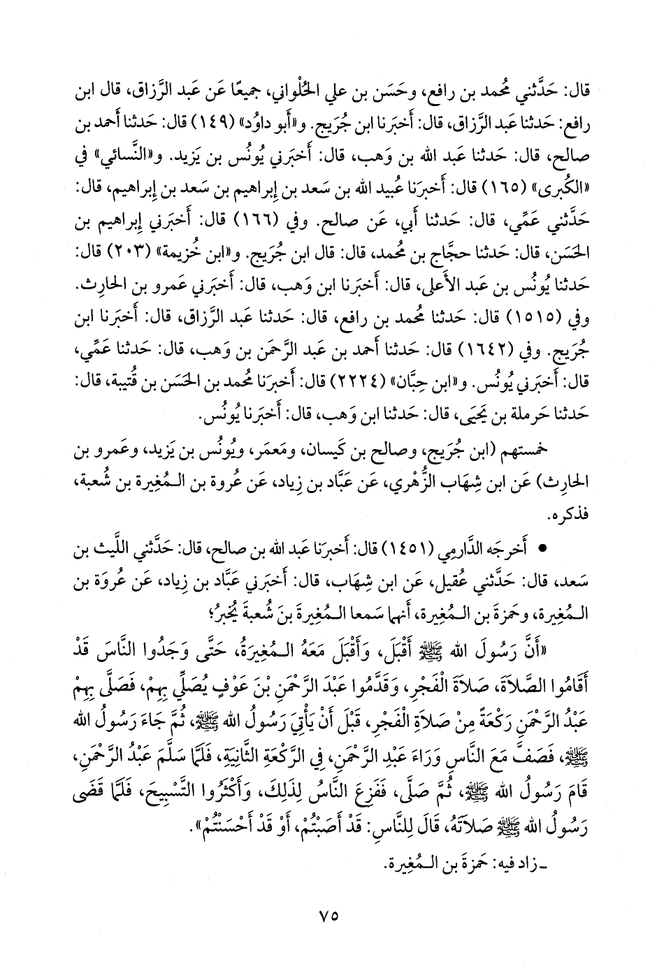 و «النَّسَائي» في «الكبرى» (١٦٥) قال: أخبرنا عُبيد الله بن سعد بن إبراهيم بن سعد بن إبراهيم، قال: حدثني عمي، قال: حدثنا أبي، عن صالح. وفي (١٦٦) قال: أخبرني إبراهيم بن الحسن، قال: حدثنا حجاج بن محمد، قال: قال ابن جُريج. و «ابن خزيمة» (٢٠٣) قال: حدثنا يونس بن عبد الأعلى، قال: أخبرنا ابن وهب، قال: أخبرني عَمرو بن الحارث. وفي (١٥١٥) قال: حدثنا محمد بن رافع، قال: حدثنا عبد الرزاق، قال: أخبرنا ابن جُريج. وفي (١٦٤٢) قال: حدثنا أحمد بن عبد الرَّحمَن بن وهب، قال: حدثنا عمي، قال: أخبرني يونس. و «ابن حِبَّان» (٢٢٢٤) قال: أخبرنا محمد بن الحسن بن قتيبة، قال: حدثنا حَرملة بن يحيى، قال: حدثنا ابن وهب، قال: أخبرنا يونس.