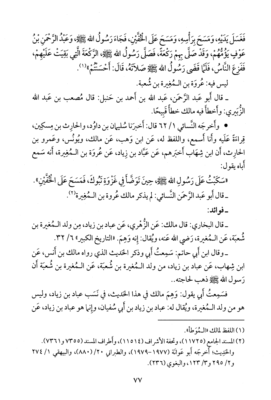 - وقال ابن أبي حاتم: سمعت أبي وذكر الحديث الذي رواه مالك بن أنس، عن ابن شهاب، عن عباد بن زياد، من ولد المغيرة بن شعبة، عن المغيرة بن شعبة أن رسول الله صَلى الله عَليه وسَلم ذهب لحاجته ..