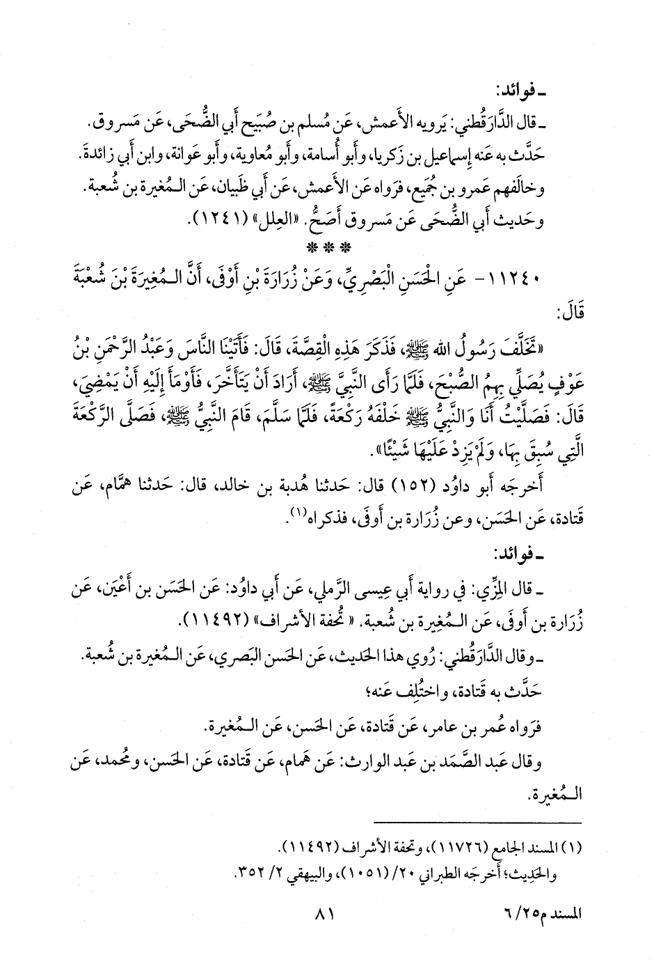 - وقال الدارقُطني: روي هذا الحديث، عن الحسن البصري، عن المغيرة بن شعبة.