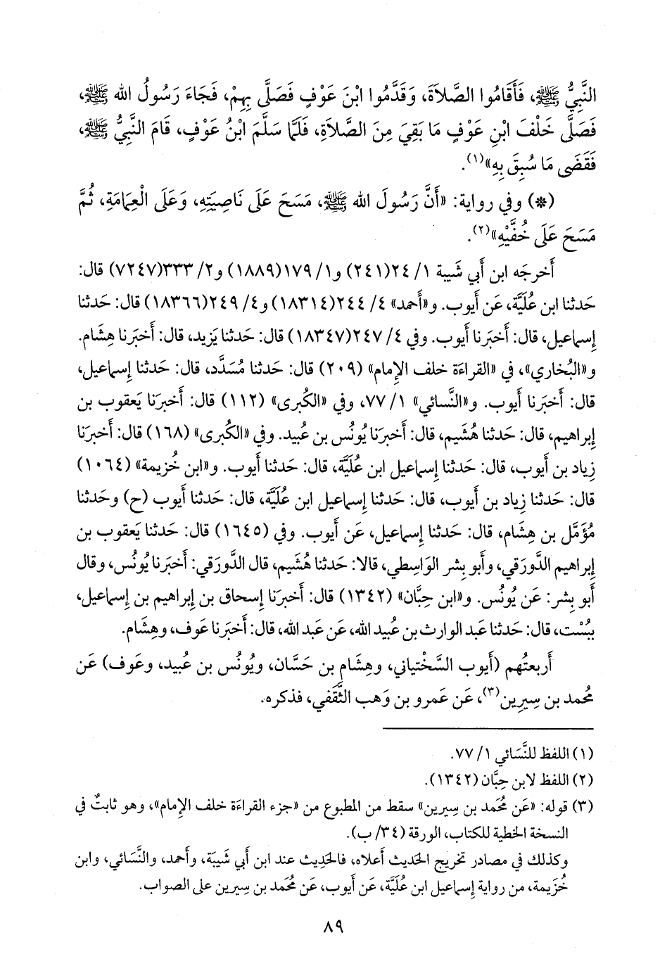 وكذلك في مصادر تخريج الحديث أعلاه، فالحديث عند ابن أبي شيبة، وأحمد، والنَّسَائي، وابن خزيمة، من رواية إسماعيل ابن عُلَية، عن أيوب، عن محمد بن سِيرين على الصواب.