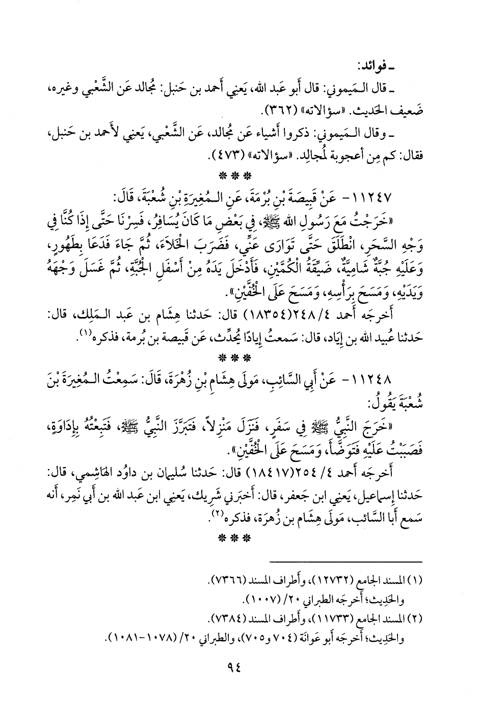 ١١٢٤٨ - عن أبي السائب مولى هشام بن زهرة، قال: سمعت المغيرة بن شعبة يقول: