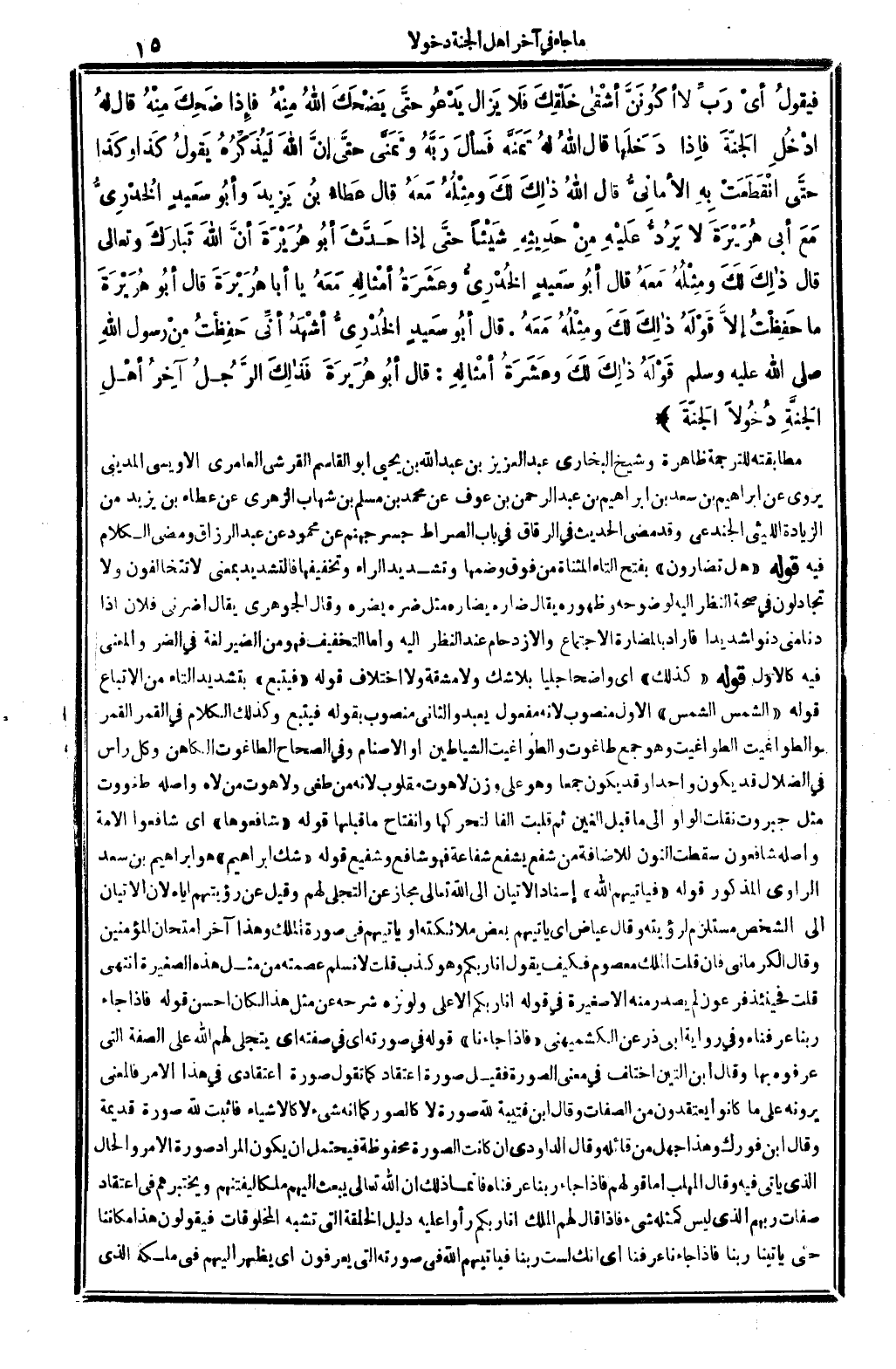 قَالَ عَطاءُ بنُ يَزِيدَ: وأبُو سَعِيدٍ الخُدْرِيُّ مَعَ أبي هُرَيْرَةَ، لَا يَرُدُّ عَلَيْهِ مِنْ حَدِيثِهِ شَيْئاً، حتَّى إِذا حَدَّثَ أبُو هُرَيْرَةَ: أنَّ الله تَبَارَكَ وَتَعَالَى قَالَ: ذالِكَ لَكَ ومِثْلُهُ مَعَهُ قَالَ أبُو سَعِيدٍ الخُدْرِيُّ: وعَشَرَةُ أمْثالِهِ مَعَهُ يَا أَبَا هُرَيْرَةَ قَالَ أَبُو هُرَيْرَةَ: مَا حَفِظْتُ إلاَّ قَوْلَهُ: ذالِكَ ومِثْلُهُ مَعَهُ قَالَ أبُو سَعيدٍ الخُدْرِيُّ: أشْهَدُ أنِّي حَفِظْتُ مِنْ رَسُول الله قَوْلَهُ ذالِكَ لَكَ وعَشَرَةُ أمْثالِهِ قَالَ أبُو هُرَيْرَةَ: فَذالِكَ الرَّجُلُ آخِرُ أهْلِ الجَنَّةِ دُخُولاً الجَنَةَ.