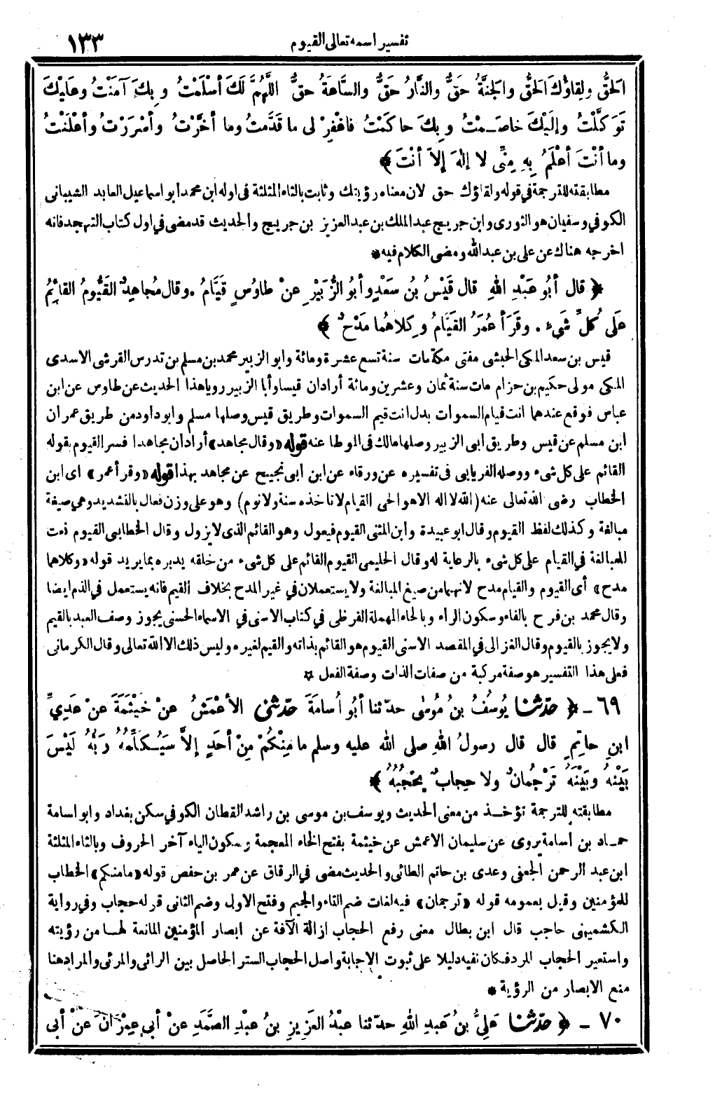 7443 - حدّثنا يُوسُفُ بنُ مُوساى، حدّثنا أبُو أُسامَةَ، حدّثني الأعْمَشُ عنْ خَيْثَمَةَ عنْ عَدِيِّ بنِ حاتِمٍ قَالَ: قَالَ رسولُ الله مَا مِنْكُمْ مِنْ أحَدٍ إلاَّ سَيُكَلِّمُهُ رَبُّهُ لَيْسَ بَيْنَهُ وبَيْنَهُ تَرْجُمانٌ، وَلَا حِجابٌ يحْجُبُهُ