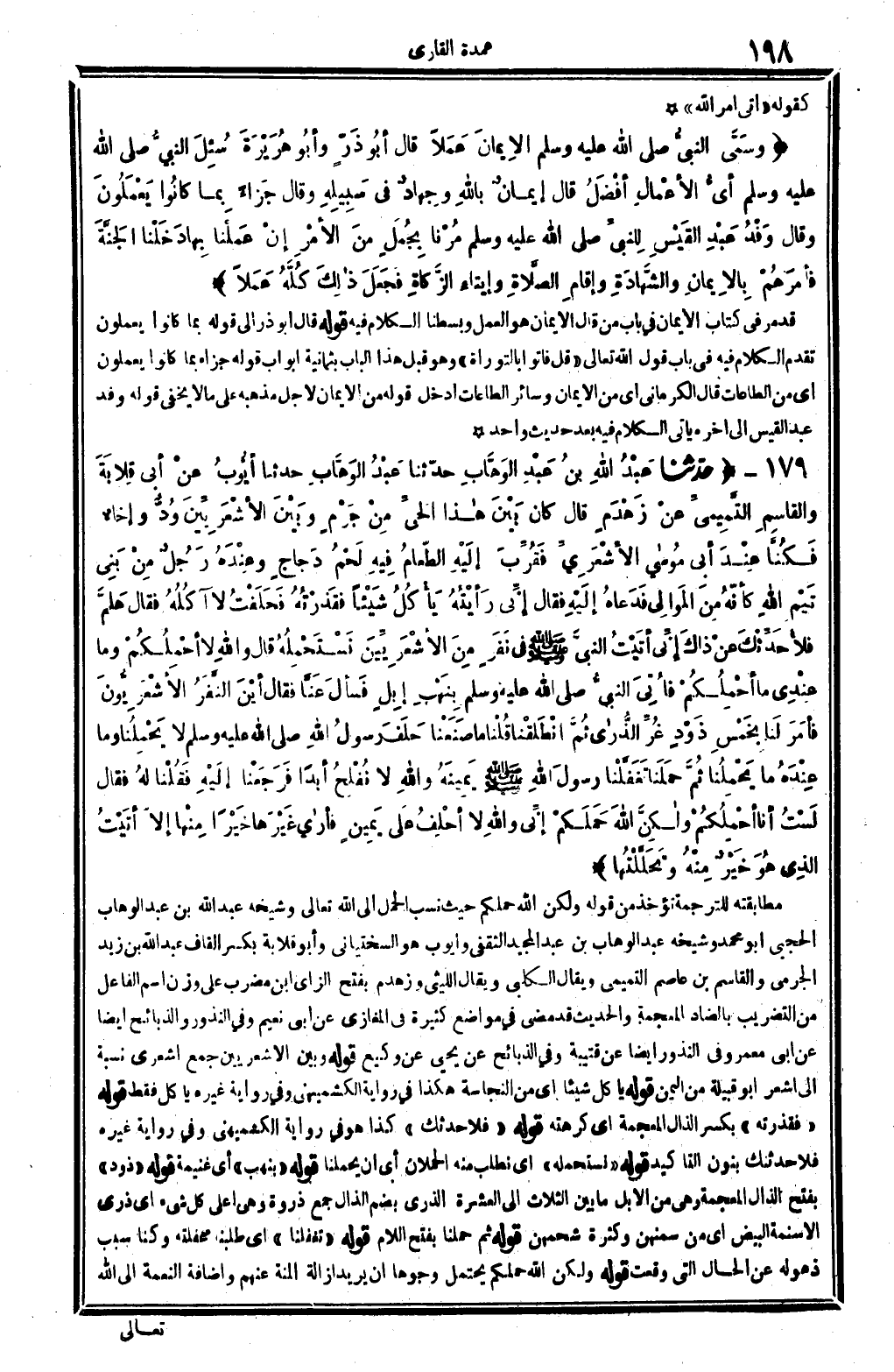 وسَمَّى النبيُّ الإيمانَ عَمَلاً قَالَ أبُو ذَرَ وأبُو هُرَيْرَةَ: سُئِلَ النبيُّ أيُّ الأعْمالِ أفْضَلُ قَالَ: إيمانٌ بِاللَّه وجِهادٌ فِي سَبِيلِهِ، وَقَالَ: {فَلاَ تَعْلَمُ نَفْسٌ مَّآ أُخْفِىَ لَهُم مِّن قُرَّةِ أَعْيُنٍ جَزَآءً بِمَا كَانُواْ يَعْمَلُونَ} وَغَيرهَا وَقَالَ وفْدُ عَبْدِ القَيْسِ لِلنبيِّ مُرْنا بِجُمَلٍ مِنَ الأمْره إنْ عَمَلْنا بِها دَخَلْنا الجَنَّةَ، فأمَرهُمْ بِالإيمانِ والشَّهاَدَةِ وإقامِ الصَّلاةِ وإيتاءِ الزَّكاةِ، فَجعَلَ ذالِكَ كُلَّهُ عَمَلاً.