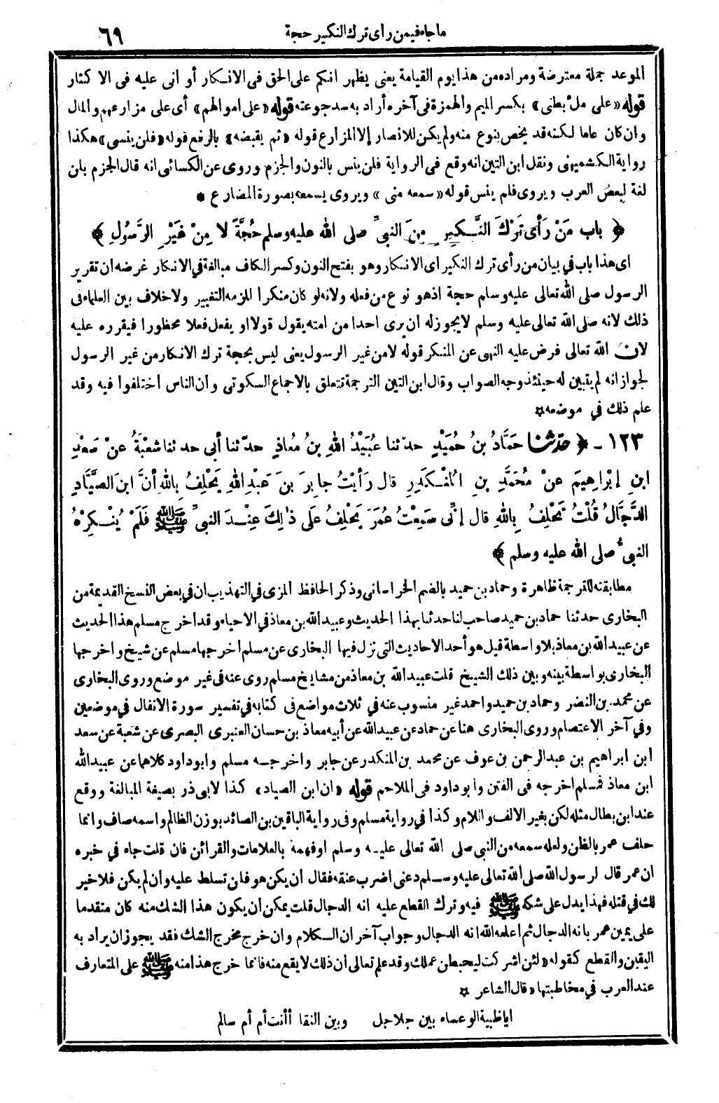 23 - (بَاب مَنْ رَأى تَرْكَ النَّكِيرِ مِنَ النبيِّ صلى الله عَلَيْهِ وَسلم حُجَّةً لَا مِنْ غَيْرِ الرَّسُولِ)