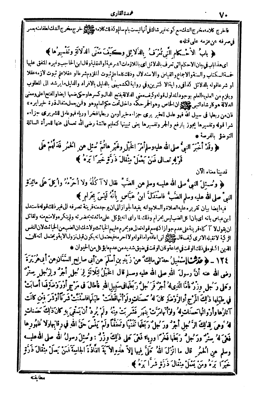 وقَدْ أخْبَرَ النبيُّ أمْرَ الخَيْلِ وغَيْرِها ثُمَّ سُئِلَ عنِ الحُمُرِ فَدَلَّهُمْ عَلَى قَوْلِهِ تَعَالى: {فَمَن يَعْمَلْ مِثْقَالَ ذَرَّةٍ خَيْراً يَرَهُ}