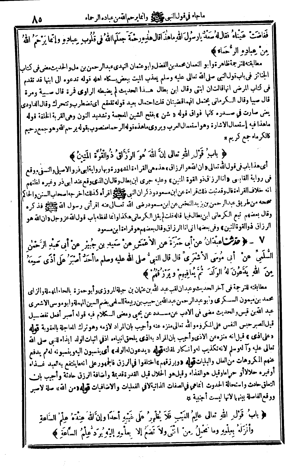 - (بابُ قَوْلِ الله تَعَالَى: {إِنَّ اللَّهَ هُوَ الرَّزَّاقُ ذُو الْقُوَّةِ الْمَتِينُ}