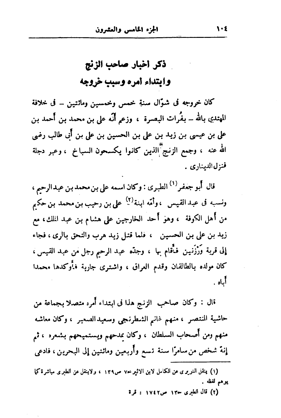 ذكر أخبار صاحب الزنج وابتداء أمره وسبب خروجه