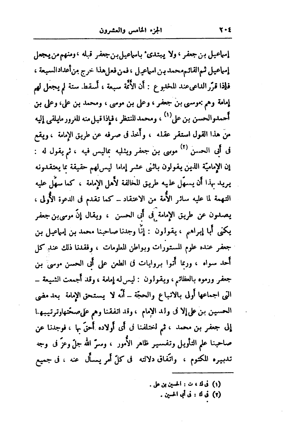 إن الإماميّة الذين يقولون باثنى عشر إماما ليس لهم حقيقة بما يعتقدونه يريد بهذا أن يسهّل عليه طريق المخالفة لأهل الإمامة، كما سهّل عليه التهمة لما عليه سائر الأمة من الاعتقاد- كما تقدم في الدعوة الأولى، يصدون عن طريق الإمامة في أبى الحسن، ويقال إنّ موسى بن جعفر يكنى أبا إبراهيم، يقولون: إنّا وجدنا صاحبنا محمد بن إسماعيل بن جعفر عنده علوم المستورات وبواطن المعلومات، وفقدنا ذلك عند كل أحد سواه، وربما أتوا بروايات في الطعن على أبى الحسن موسى بن جعفر ورموه بالعظائم، ويقولون: ليس له إمامة، وقد أجمعت الشيعة- التى اجماعها أولى بالاتباع والحجّة- أنّه لا يستحق الإمامة بعد مضى الحسين بن على إلا في ولد الإمام، وقد اتفقنا وهم على صحّتها وترتيبها إلى جعفر بن محمد، ثم اختلفنا في أى أولاده أحقّ بها، فوجدنا عن صاحبنا علم التأويل وتفسير ظاهر الأمور، وسرّ الله جلّ وعزّ في وجه تدبيره المكتوم، واتّفاق دلالته في كلّ أمر يسأل عنه، فى جميع