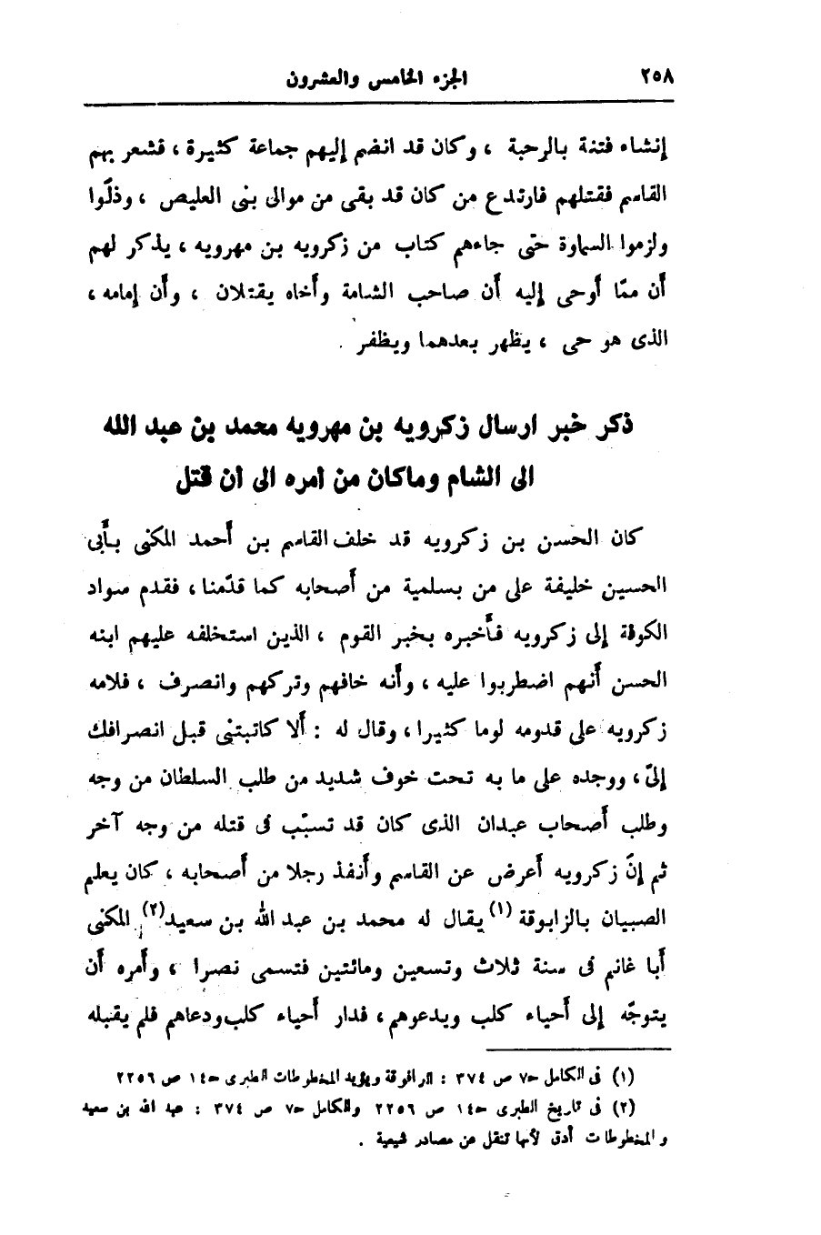 ذكر خبر ارسال زكرويه بن مهرويه محمد بن عبد الله الى الشام وما كان من أمره الى أن قتل