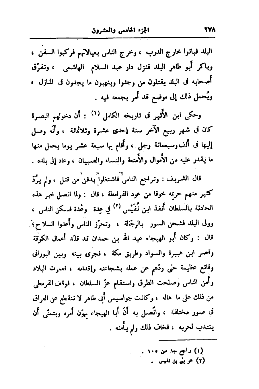 قال الشريف: وتراجع الناس فاشتغلوا بدفن من قتل، ولم يردّ كثير منهم حريمه خوفا من عود القرامطة، قال: ولما اتصل خبر هذه الحادثة بالسلطان أنفذ ابن نفيس «2»