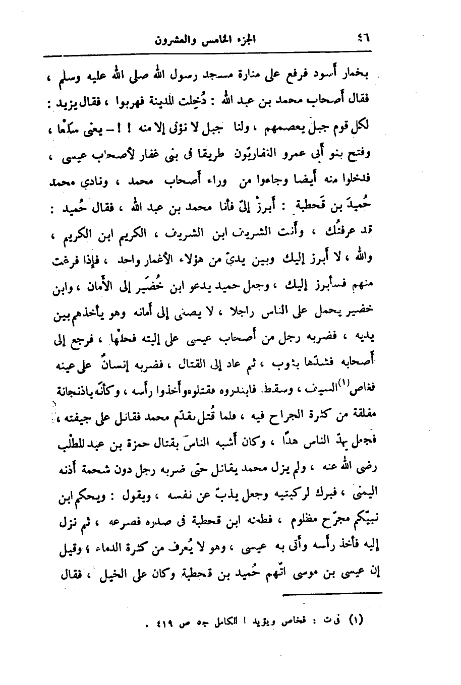 لكل قوم جبل يعصمهم، ولنا جبل لا نؤنى إلا منه!! - يعنى سلعا، وفتح بنو أبى عمرو الغفاريّون طريقا في بنى غفار لأصحاب عيسى، فدخلوا منه أيضا وجاءوا من وراء أصحاب محمد، ونادى محمد حميد بن قحطبة: أبرز إلىّ فأنا محمد بن عبد الله، فقال حميد: