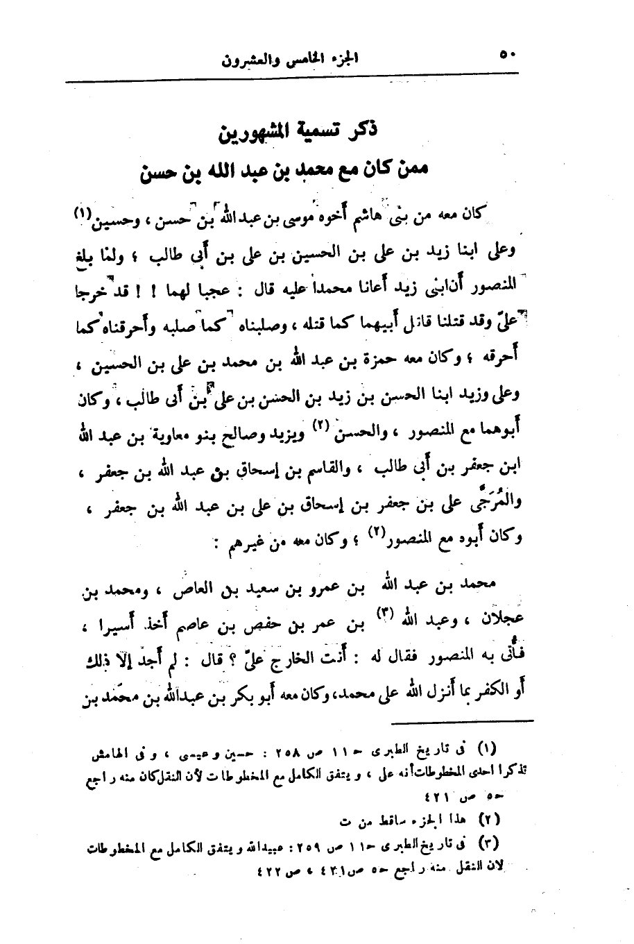 ذكر تسمية المشهورين ممن كان مع محمد بن عبد الله بن حسن