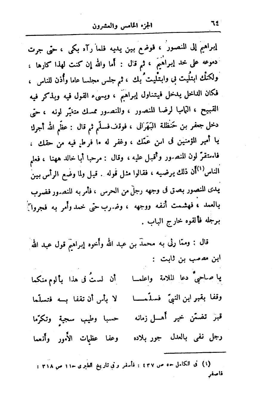 قال: وممّا رثى به محمد بن عبد الله وأخوه إبراهيم قول عبد الله ابن مصعب بن ثابت: