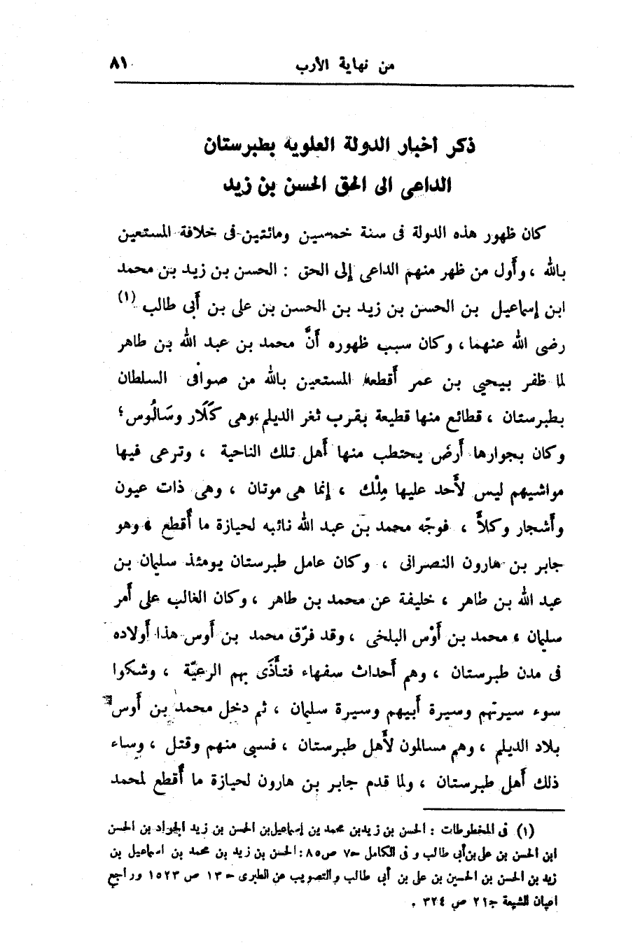ذكر أخبار الدولة العلويه بطبرستان الداعى الى الحق الحسن بن زيد