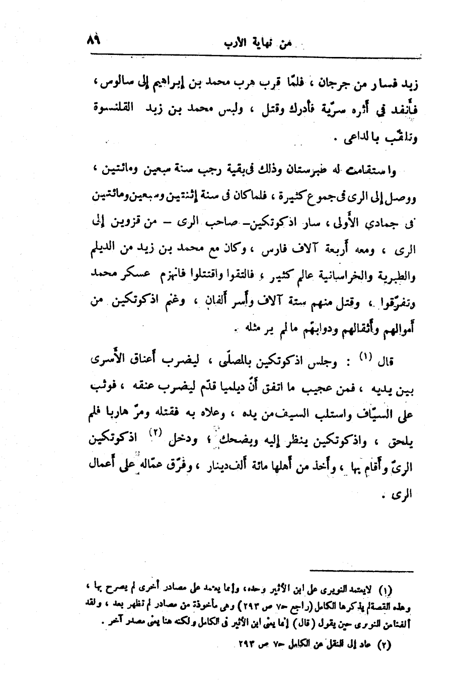 قال «1» : وجلس اذكوتكين بالمصلّى، ليضرب أعناق الأسرى بين يديه، فمن عجيب ما اتفق أنّ ديلميا قدّم ليضرب عنقه، فوثب على السيّاف واستلب السيف من يده، وعلاه به فقتله ومرّ هاربا فلم يلحق، واذكوتكين ينظر إليه ويضحك؛ ودخل «2» اذكوتكين الرىّ وأقام بها، وأخذ من أهلها مائة ألف دينار، وفرّق عمّاله على أعمال الرى.