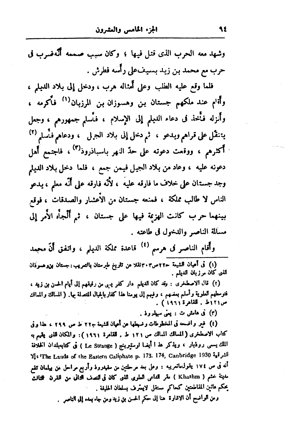 فلما وقع عليه الطلب وعلى أمثاله هرب، ودخل إلى بلاد الديلم، وأقام عند ملكهم جستان بن وهسوزان بن المرزبان «1» فأكرمه، وأنزله فأخذ في دعاء الديلم إلى الإسلام، فأسلم جمهورهم، وجعل يتنقّل على قراهم ويدعو، ثم دخل إلى بلاد الجيل، ودعاهم فأسلم «2» أكثرهم، ووقعت دعوته على حدّ النهر باسباذروذ «3» ، فاجتمع أهل دعونه عليه، وعاد من بلاد الجيل فيمن جمع، فلما دخل بلاد الديلم وجد جستان على خلاف ما فارقه عليه، لأنّه فارقه على أنّه معلم، يدعو الناس لا طالب مملكة، فمنعه جستان من الأعشار والصدقات، فوقع بينهما حرب كانت الهزيمة فيها على جستان، ثم ألجأه الأمر إلى مسالمة الناصر والدخول في طاعته.