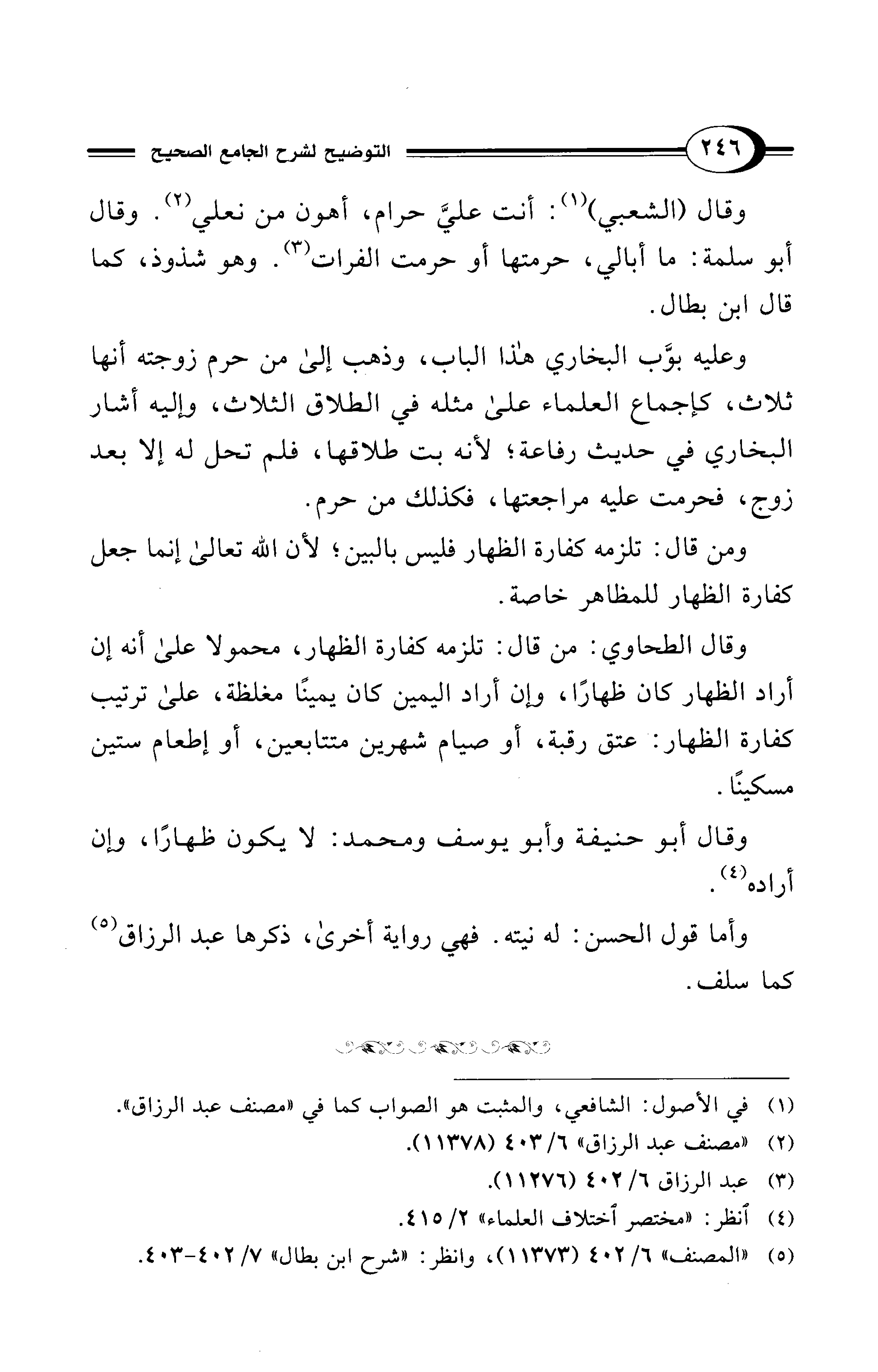 (¬5) "المصنف" 6/ 402 (11373)، وانظر: "شرح ابن بطال" 7/ 402 - 403.