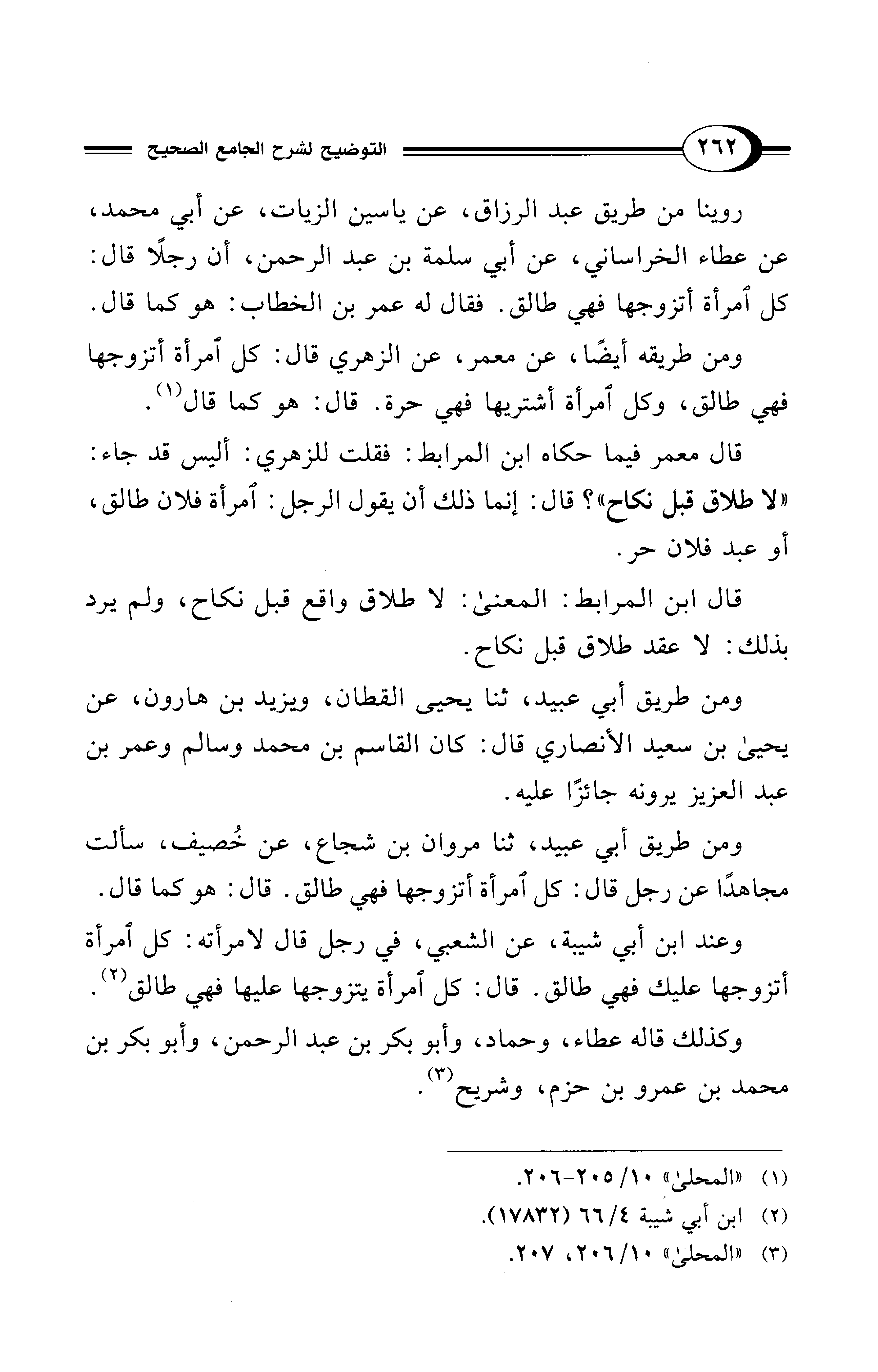 روينا من طريق عبد الرزاق، عن ياسين الزيات، عن أبي محمد، عن عطاء الخراساني، عن أبي سلمة بن عبد الرحمن، أن رجلاً قال: كل امرأة أتزوجها فهي طالق. فقال له عمر بن الخطاب: هو كما قال.