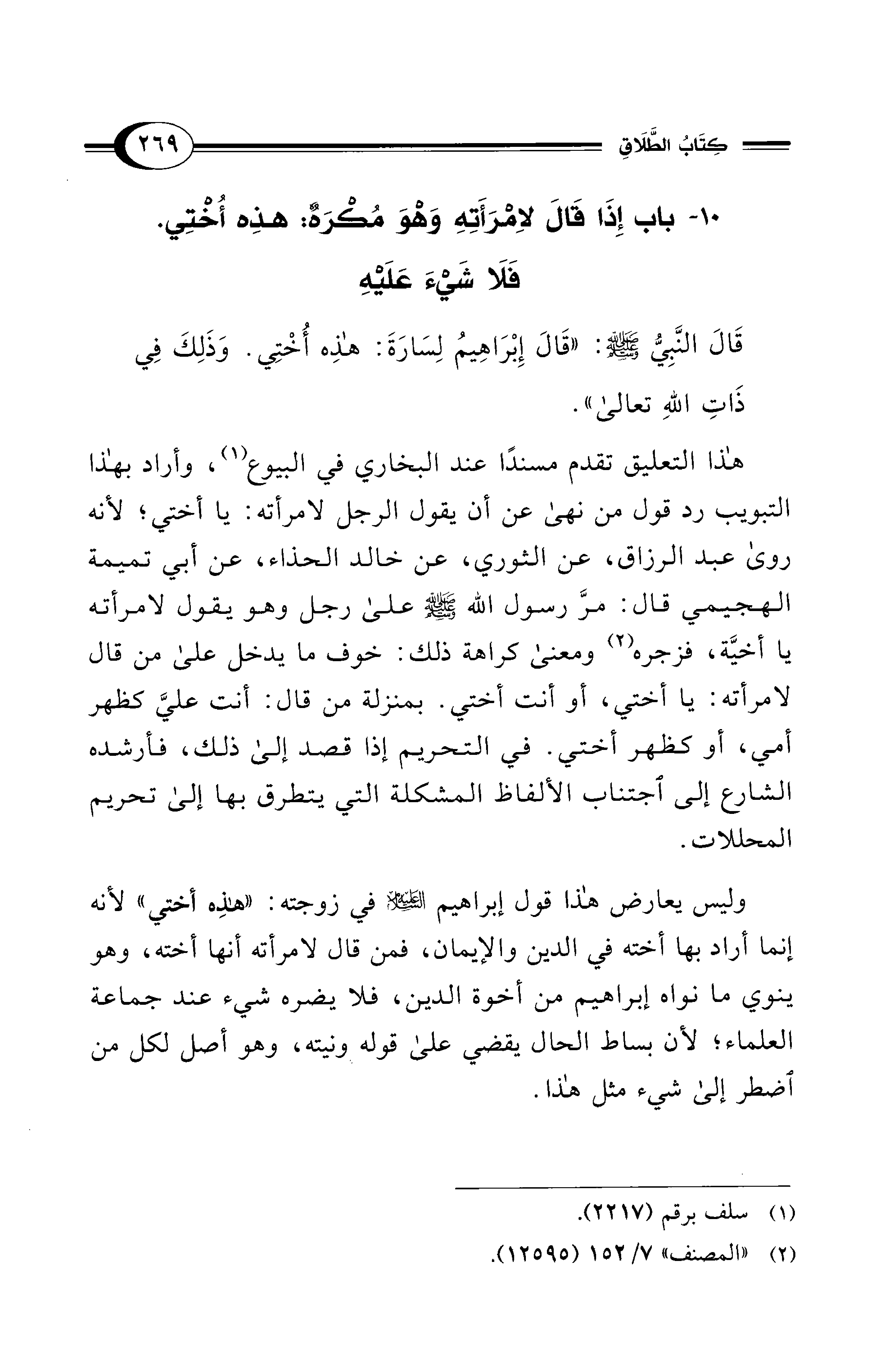 قَالَ النَّبِيُّ - صلى الله عليه وسلم -: «قَالَ إِبْرَاهِيمُ لِسَارَةَ: هَذِهِ أُخْتِي وَذَلِكَ فِى ذَاتِ اللهِ -عَزَّ وَجَلَّ-».
