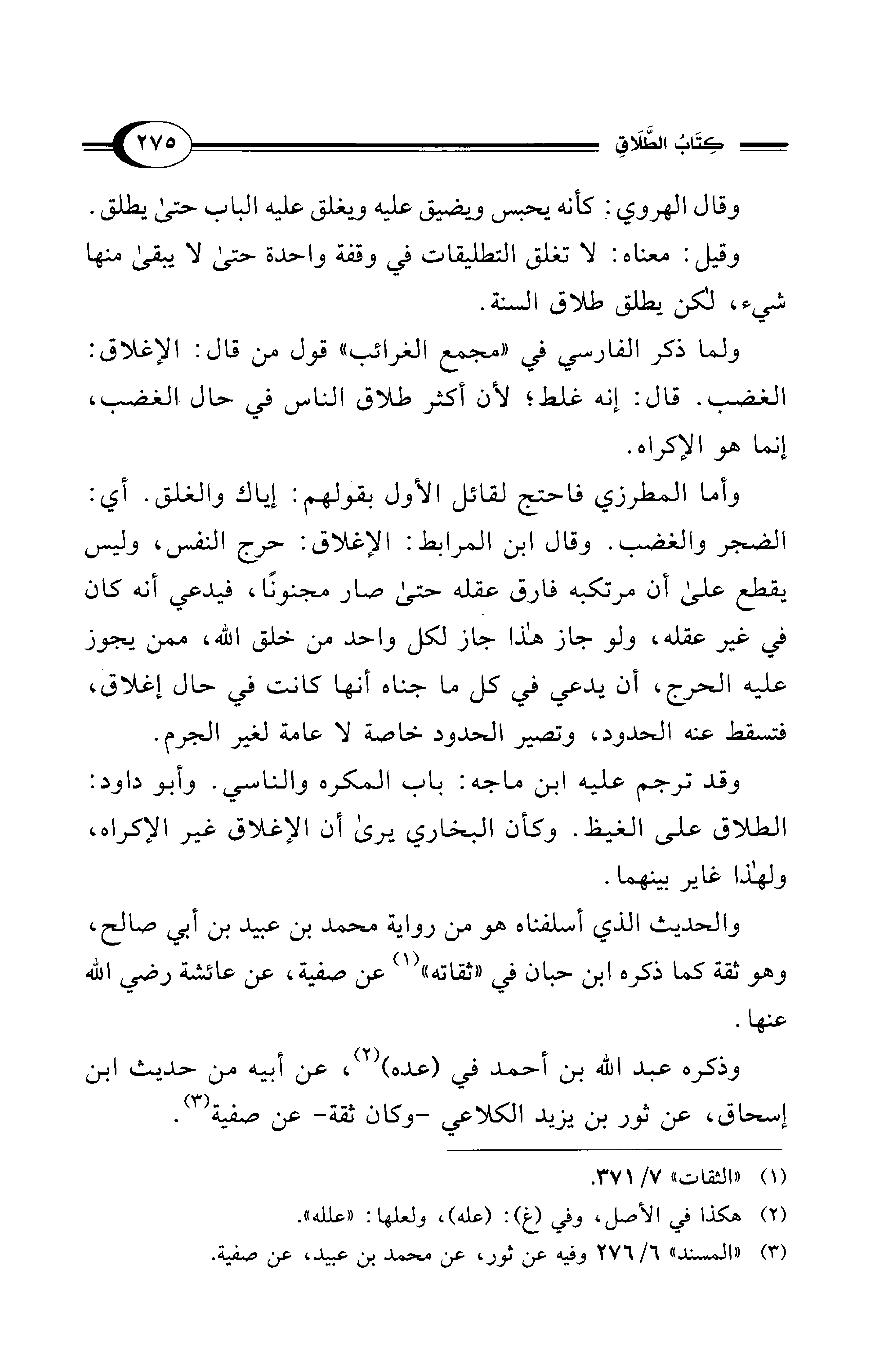 ولما ذكر الفارسي في "مجمع الغرائب" قول من قال: الإغلاق: الغضب. قال: إنه غلط؛ لأن أكثر طلاق الناس في حال الغضب، إنما هو الإكراه.