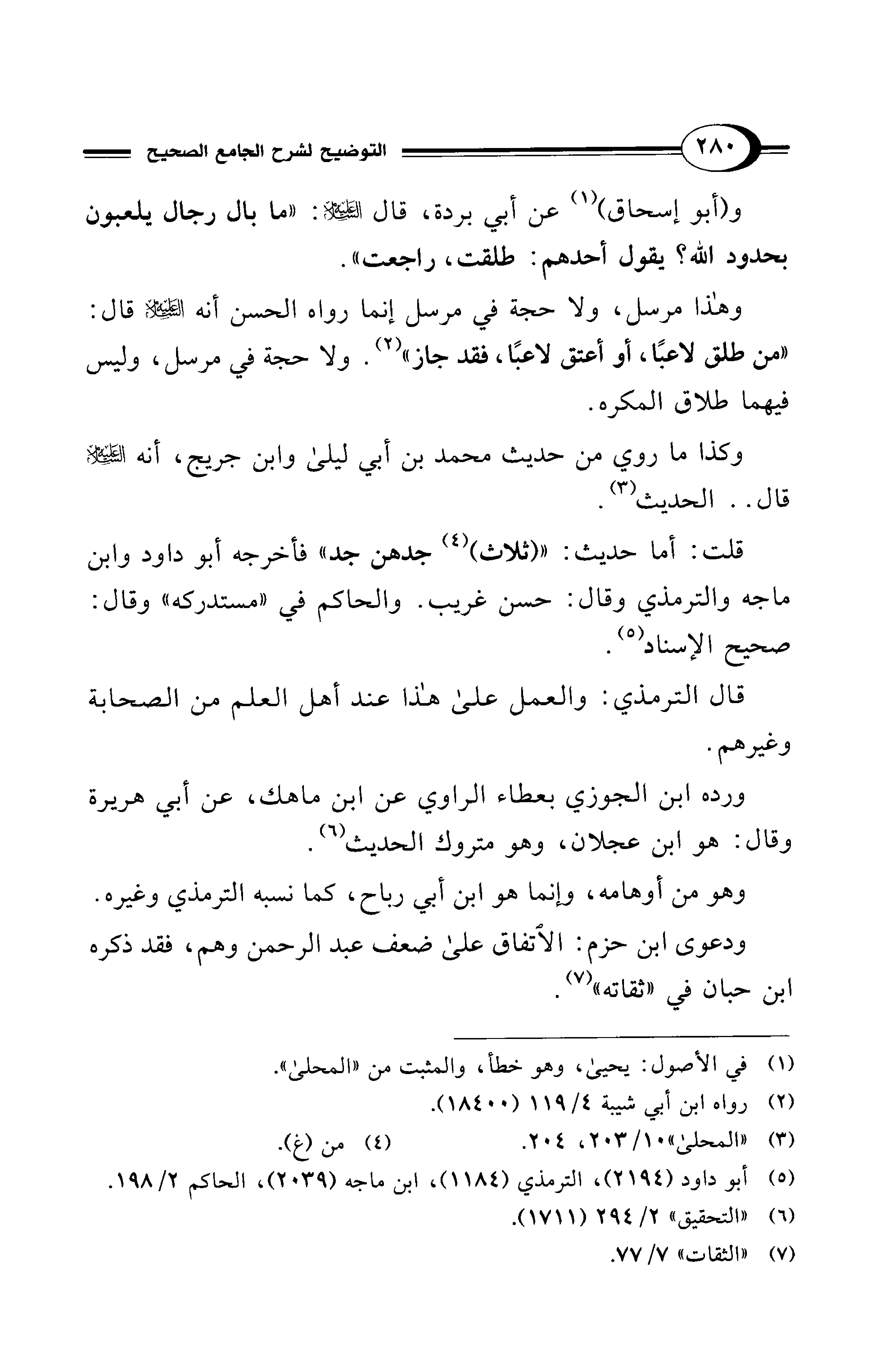 وهو من أوهامه، وإنما هو ابن أبي رباح، كما نسبه الترمذي وغيره. ودعوى ابن حزم: الاتفاق على ضعف عبد الرحمن وهم، فقد ذكره ابن حبان في "ثقاته" (¬7).