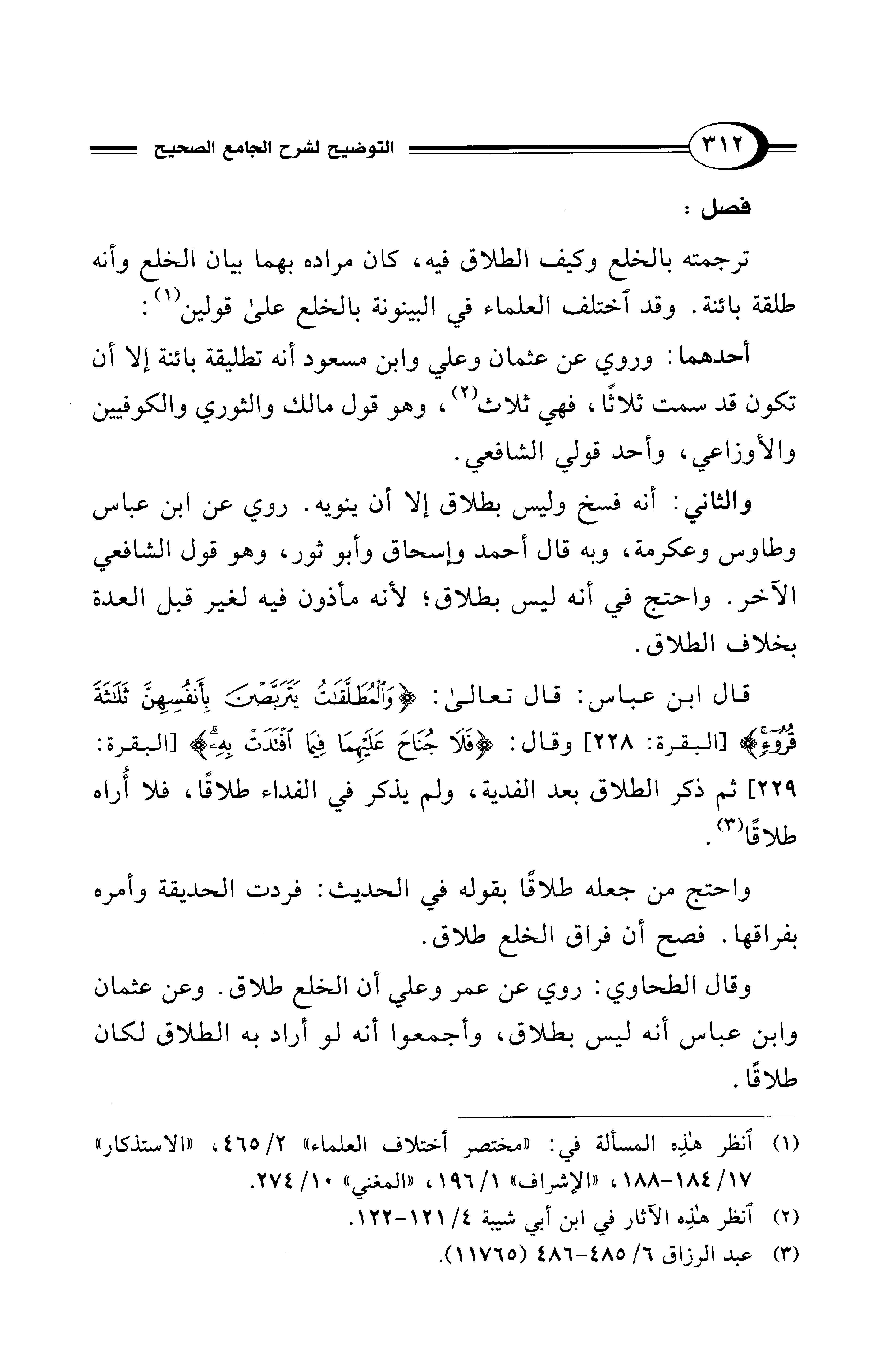 قال ابن عباس: قال تعالى: {وَالْمُطَلَّقَاتُ يَتَرَبَّصْنَ بِأَنْفُسِهِنَّ ثَلَاثَةَ قُرُوءٍ} [البقرة: 228] وقال: {فَلَا جُنَاحَ عَلَيْهِمَا فِيمَا افْتَدَتْ بِهِ} [البقرة: 229] ثم ذكر الطلاق بعد الفدية، ولم يذكر في الفداء طلاقًا، فلا أُراه طلاقًا (¬3).