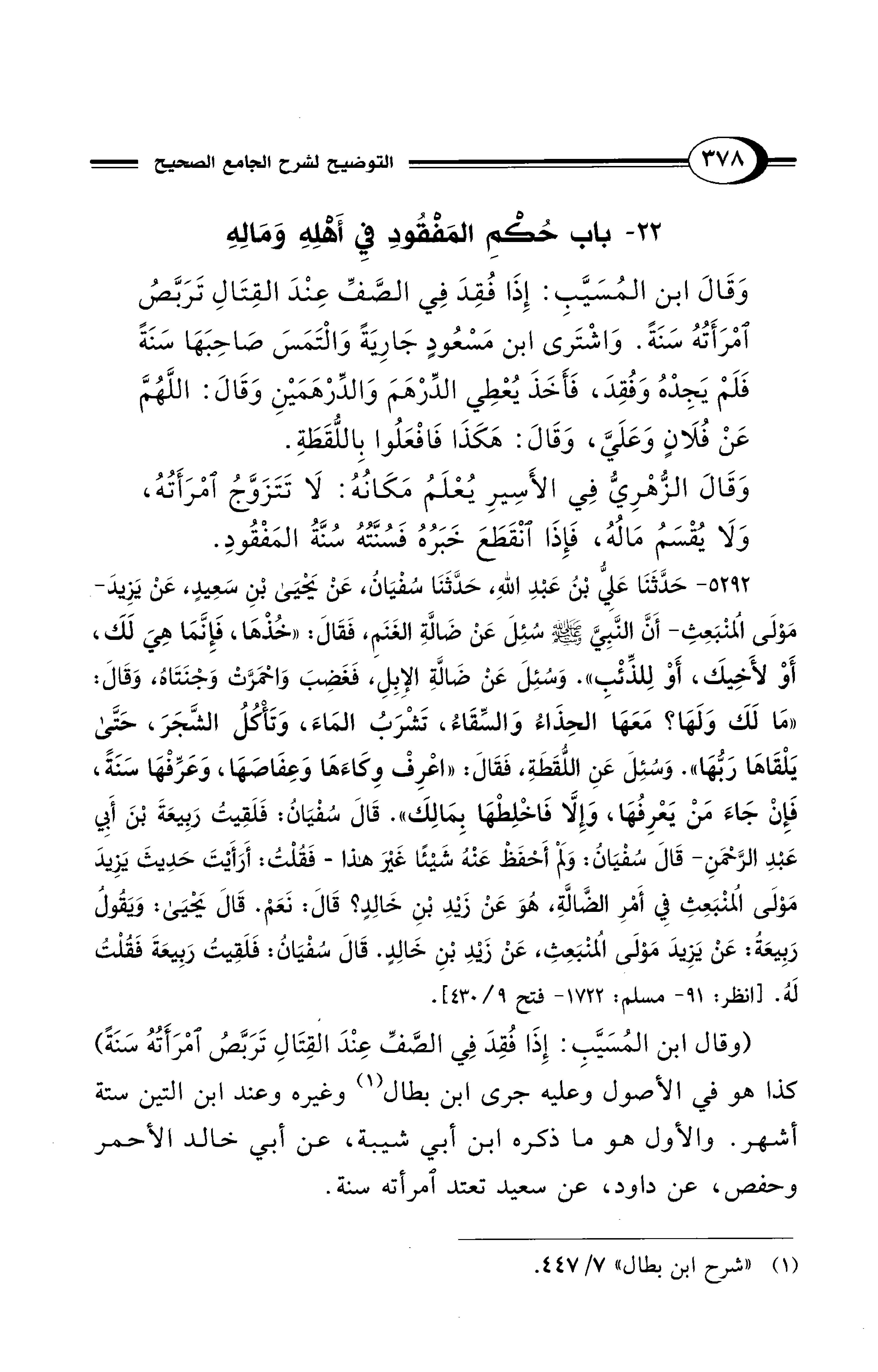 (¬1) "شرح ابن بطال" 7/ 447.