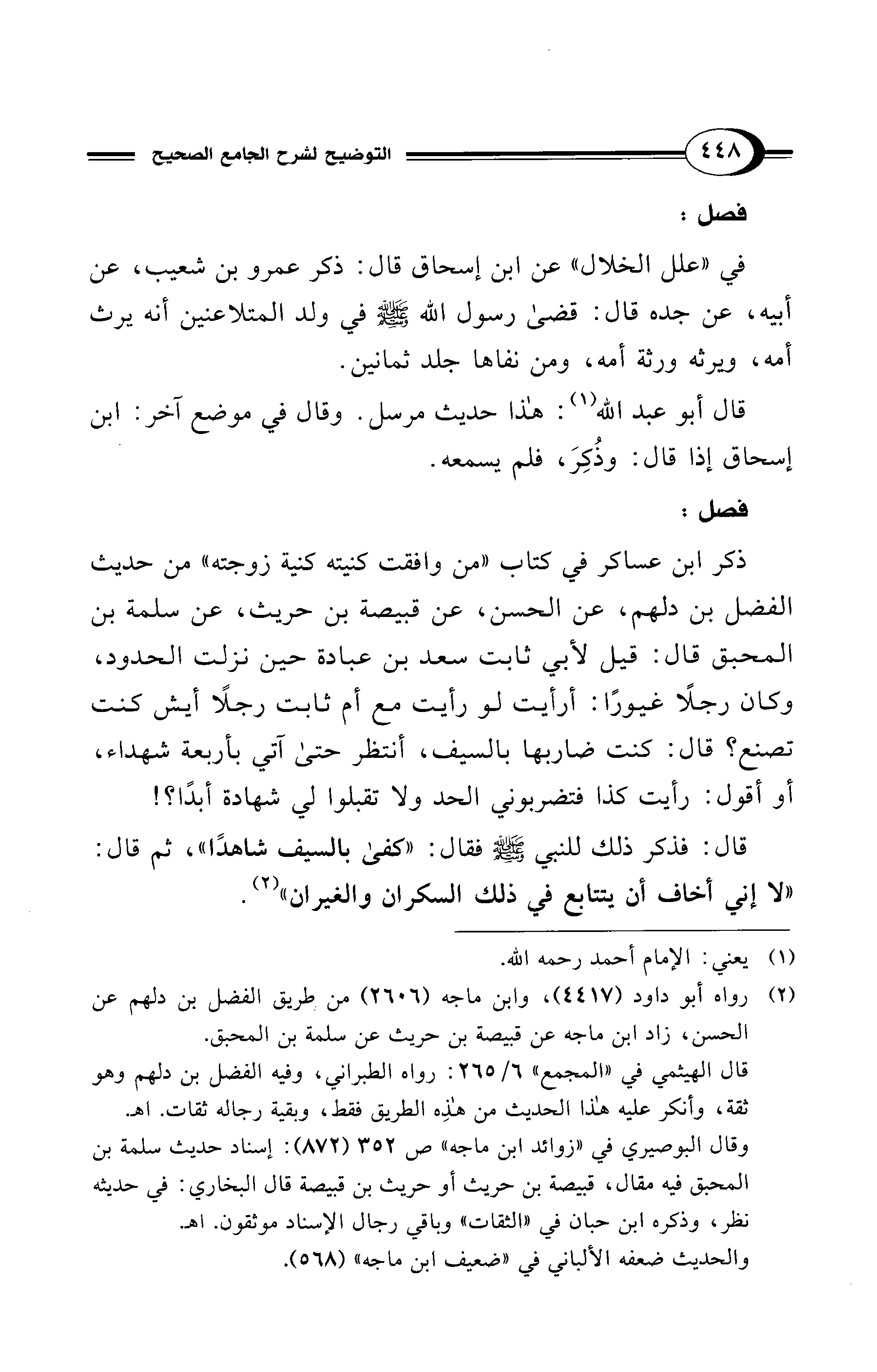 (¬2) رواه أبو داود (4417)، وابن ماجه (2606) من طريق الفضل بن دلهم عن الحسن، زاد ابن ماجه عن قبيصة بن حريث عن سلمة بن المحبق.
