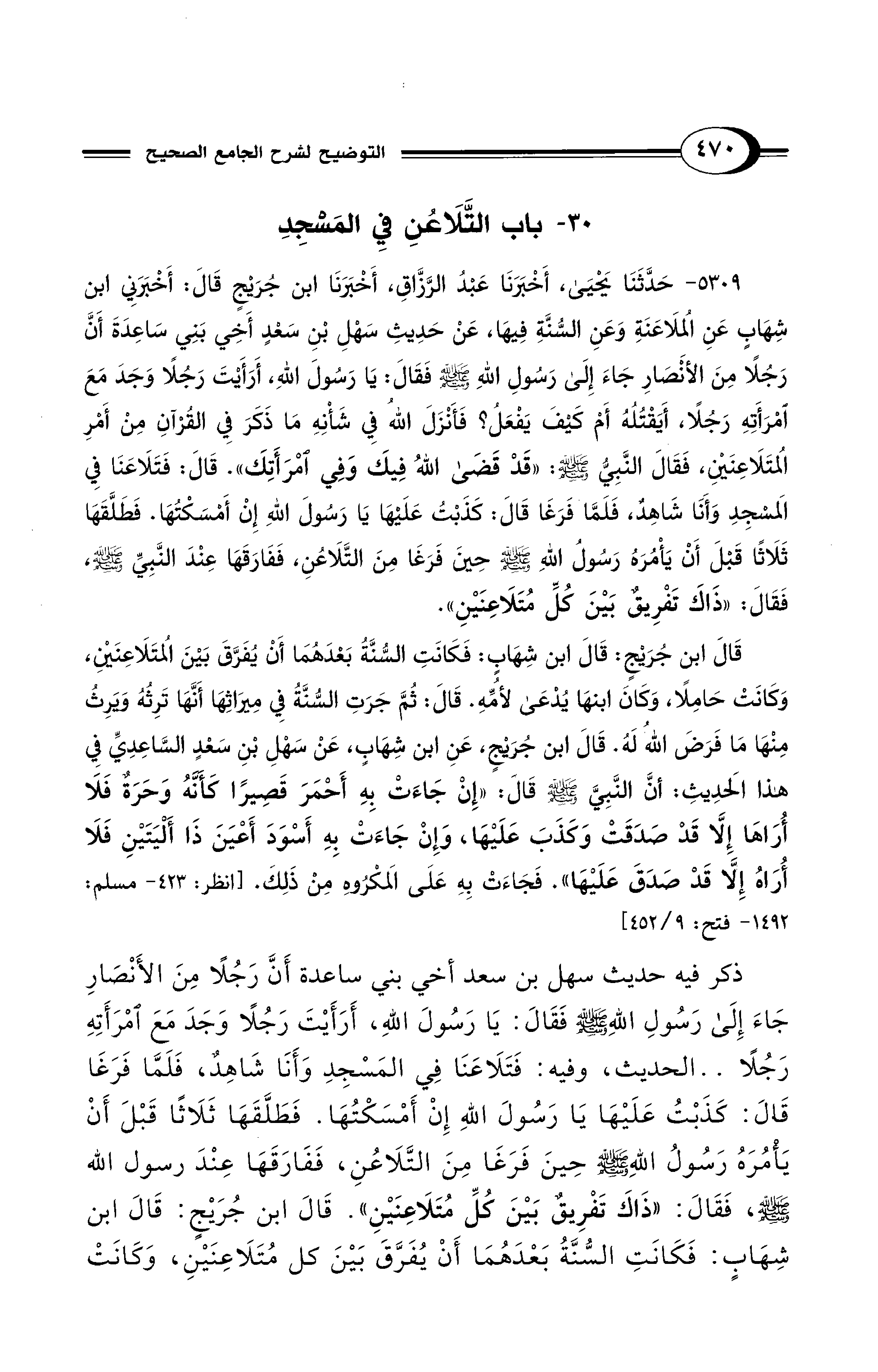 30 - باب التَّلاَعُنِ فِي الْمَسْجِدِ