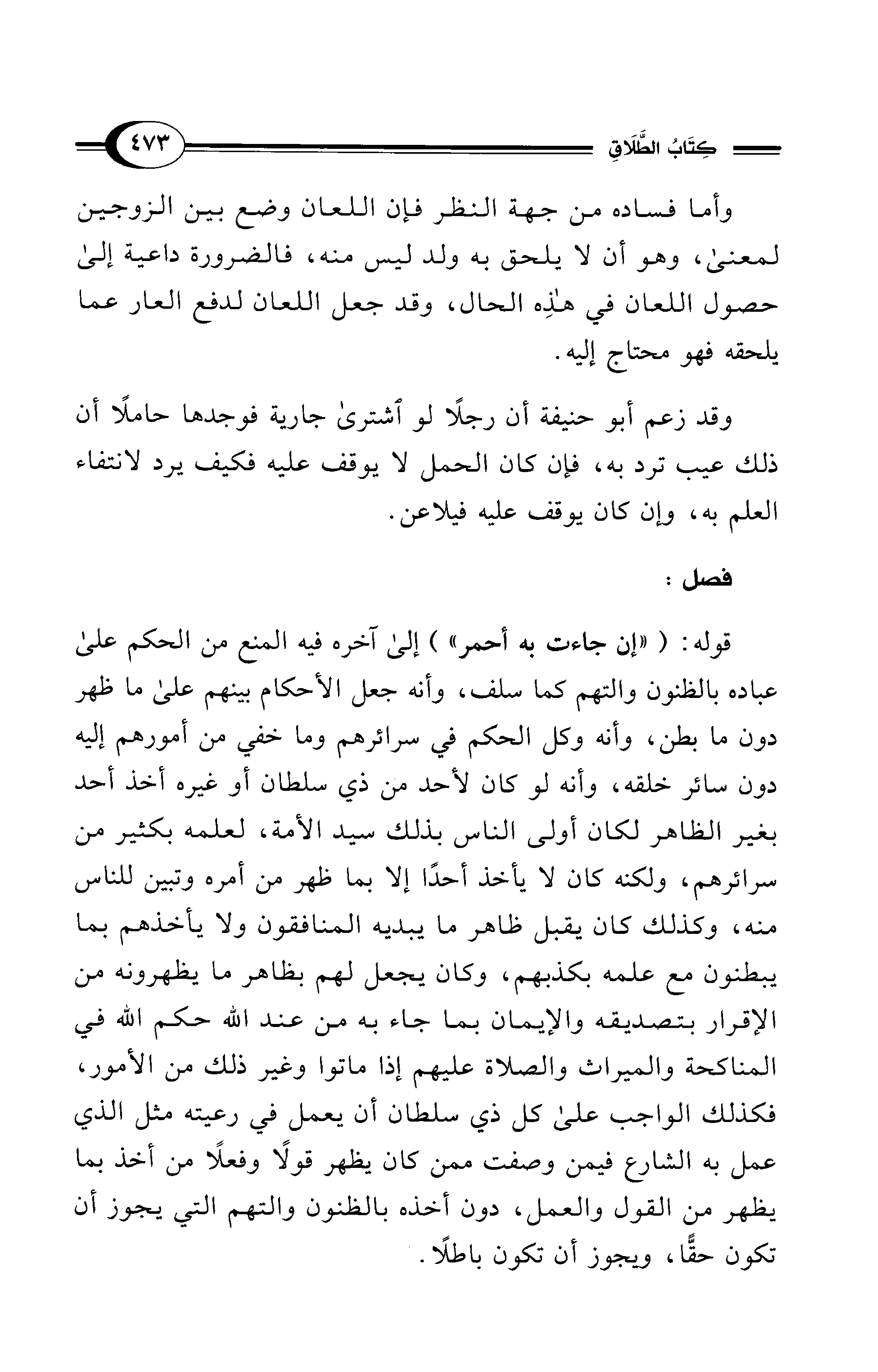 وأما فساده من جهة النظر فإن اللعان وضع بين الزوجين لمعنى، وهو أن لا يلحق به ولد ليس منه، فالضرورة داعية إلى حصول اللعان في هذِه الحال، وقد جعل اللعان لدفع العار عما يلحقه فهو محتاج إليه.