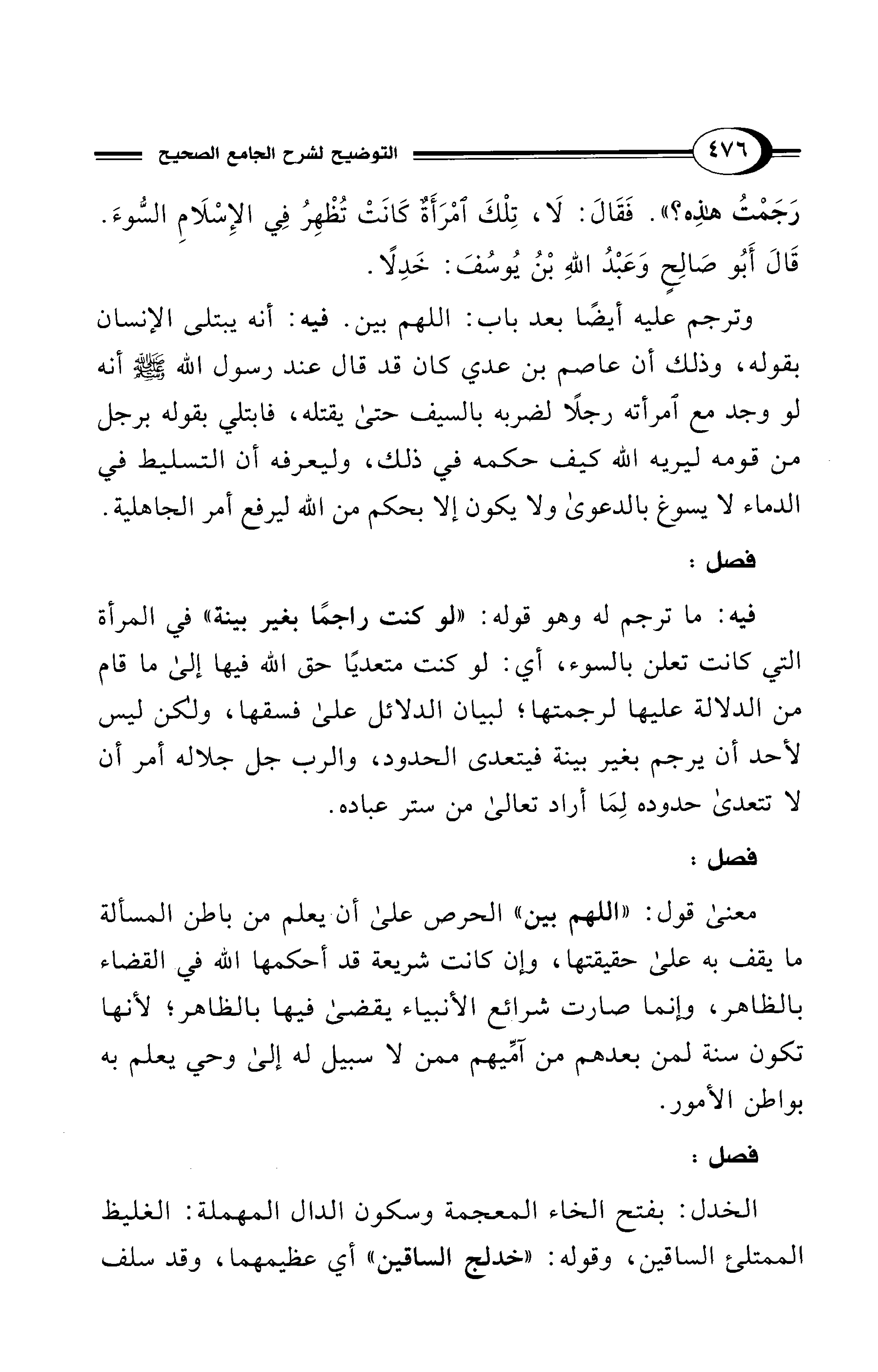 رَجَمْتُ هذِه؟ ". فَقَالَ: لَا، تِلْكَ امْرَأَةٌ كَانَتْ تُظْهِرُ فِي الإِسْلَامِ السُّوءَ. قَالَ أَبُو صَالِحٍ وَعَبْدُ اللهِ بْنُ يُوسُفَ: خَدِلًا.