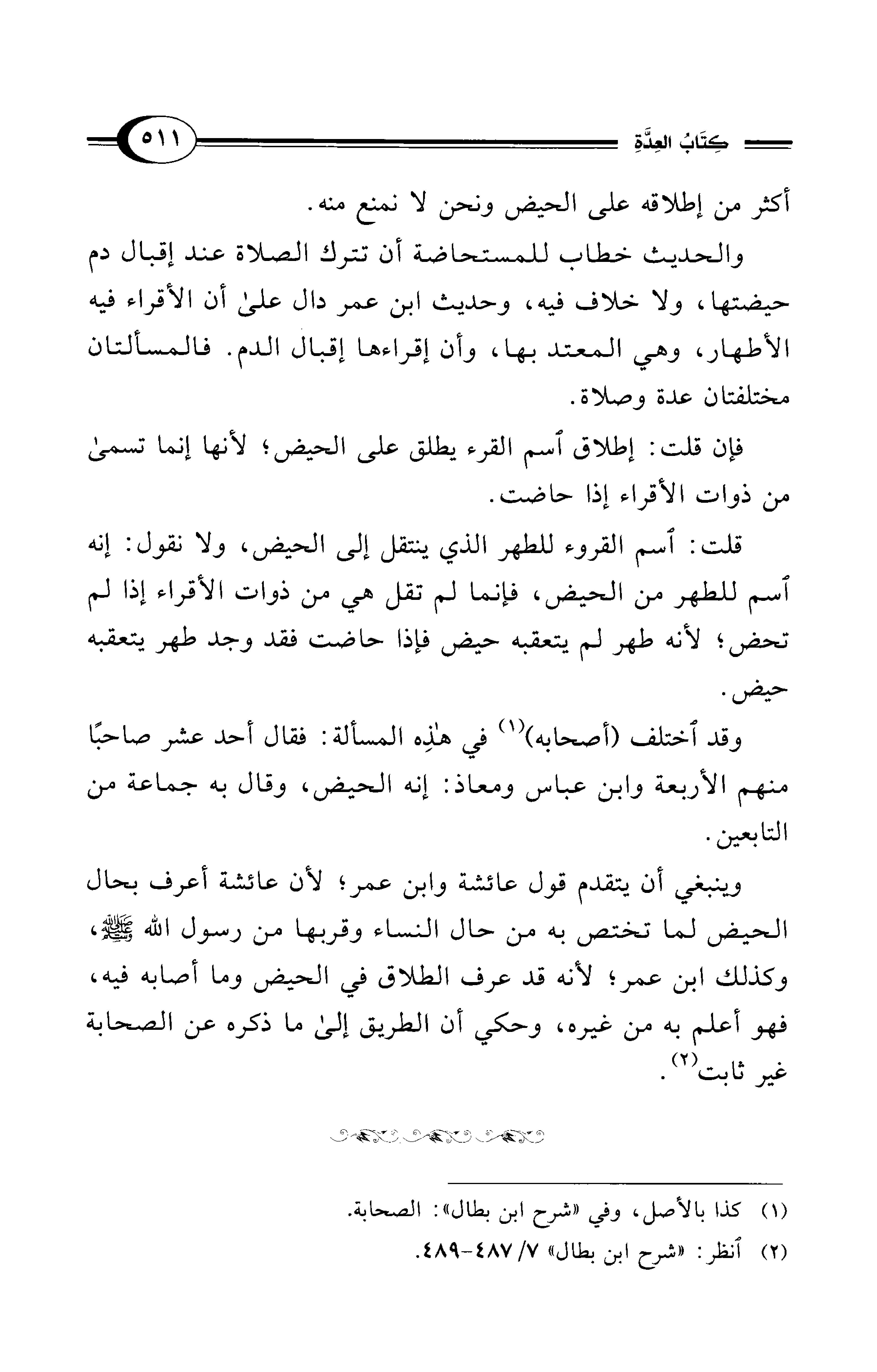 وينبغي أن يتقدم قول عائشة وابن عمر؛ لأن عائشة أعرف بحال الحيض لما تختص به من حال النساء وقربها من رسول الله - صلى الله عليه وسلم -، وكذلك ابن عمر؛ لأنه قد عرف الطلاق في الحيض وما أصابه فيه، فهو أعلم به من غيره، وحكي أن الطريق إلى ما ذكره عن الصحابة غير ثابت (¬2).