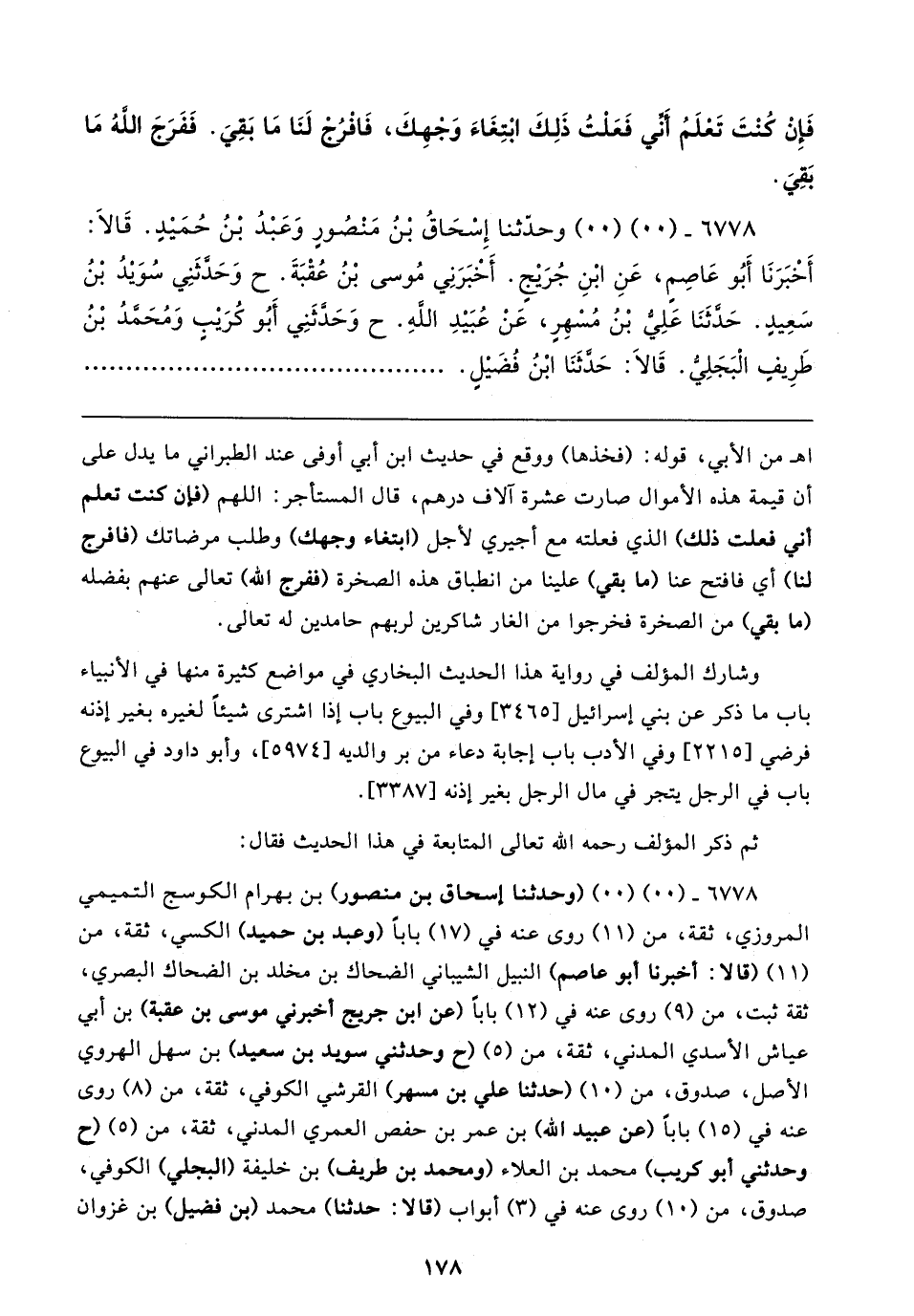 وشارك المؤلف في رواية هذا الحديث البُخَارِيّ في مواضع كثيرة منها في الأنبياء باب ما ذكر عن بني إسرائيل [٣٤٦٥] وفي البيوع باب إذا اشترى شيئًا لغيره بغير إذنه فرضي [٢٢١٥] وفي الأدب باب إجابة دعاء من بن والديه [٥٩٧٤]، وأبو داود في البيوع باب في الرَّجل يتجر في مال الرَّجل بغير إذنه [٣٣٨٧].